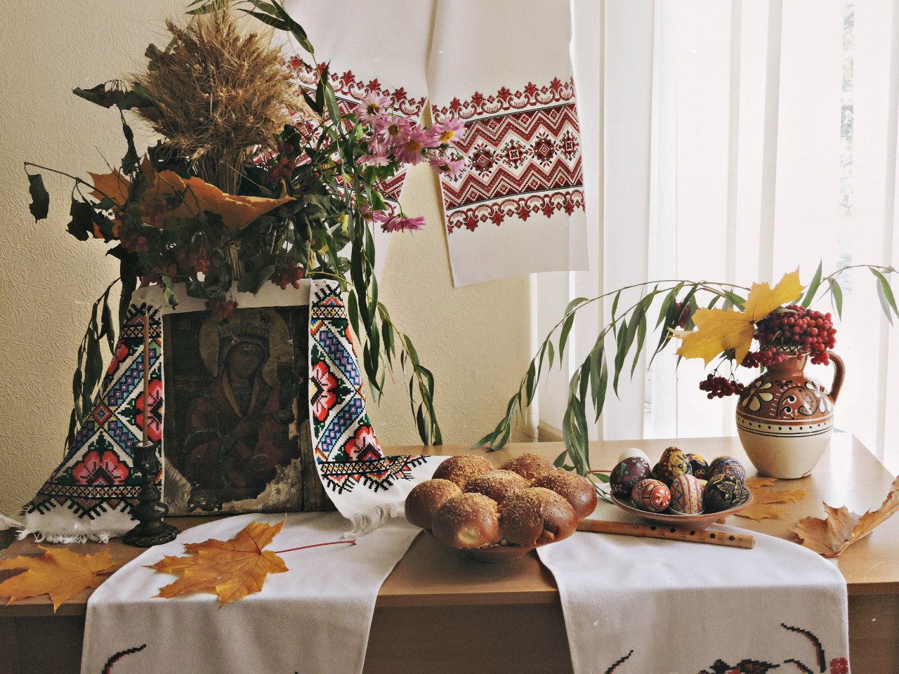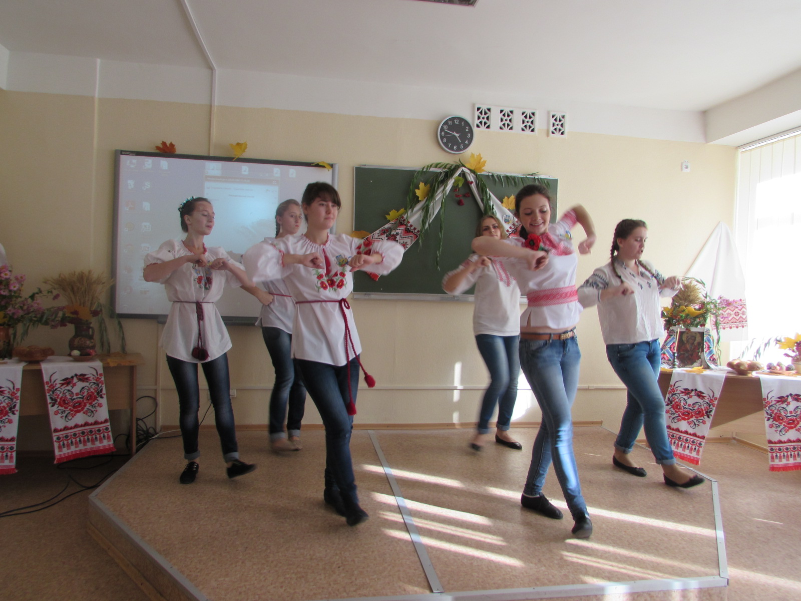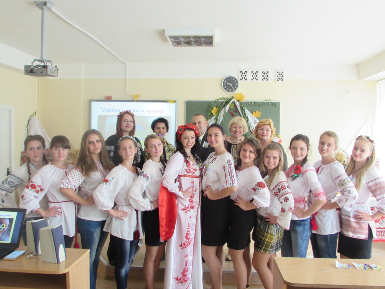 Активну участь у підготовці та проведенні виховного заходу взяли студенти I курсу дошкільної та початкової освіти. Вони святково прикрасили аудиторію. Верба, калина, квіти, рушники, коровай, емблеми з національними символами створили атмосферу українського народного свята.