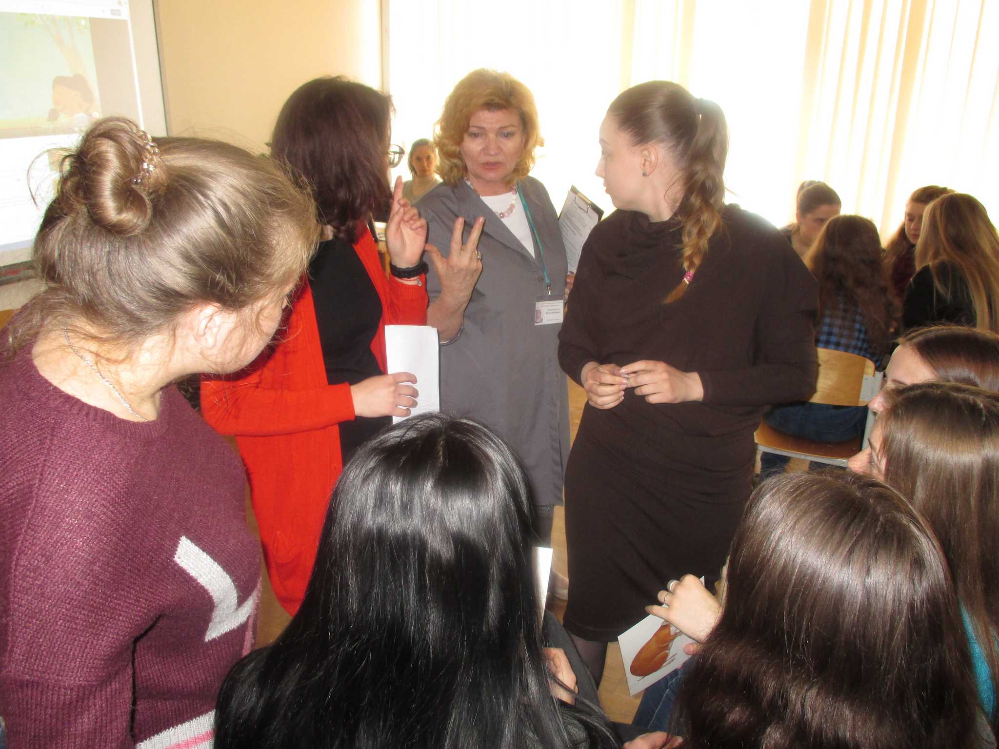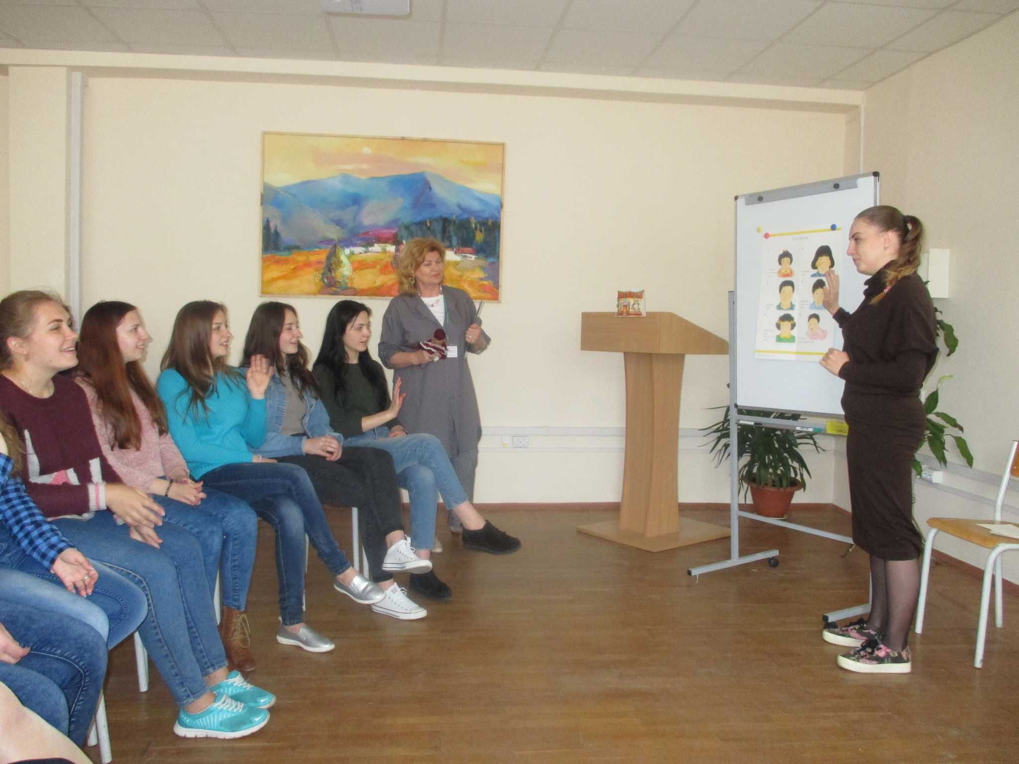Практичне заняття у формі тренінгу пройшло цікаво й емоційно, студенти мали змогу відчути себе у ролі вчителів, моделюючи різні етапи заняття англійської мови. Модератор заходу: О. В. Лобода, старший викладач кафедри іноземних мов і методик їх навчання.