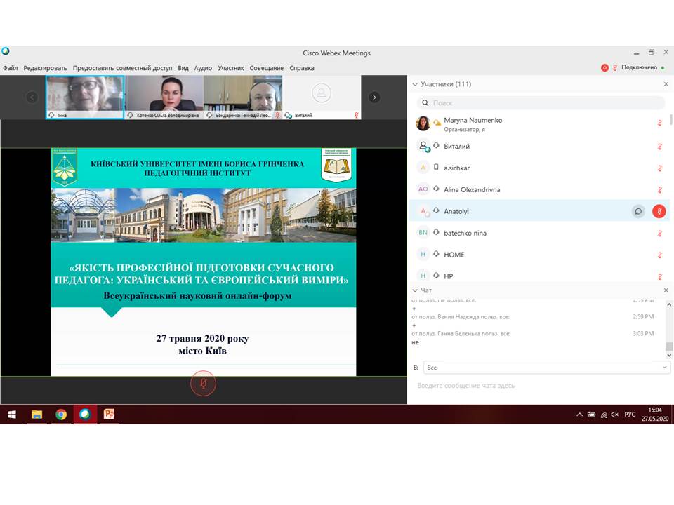 27 травня 2020 року в Педагогічному інституті Київського університету імені Бориса Грінченка відбувся Всеукраїнський науковий онлайн-форум «Якість професійної підготовки сучасного педагога: український та європейський виміри».