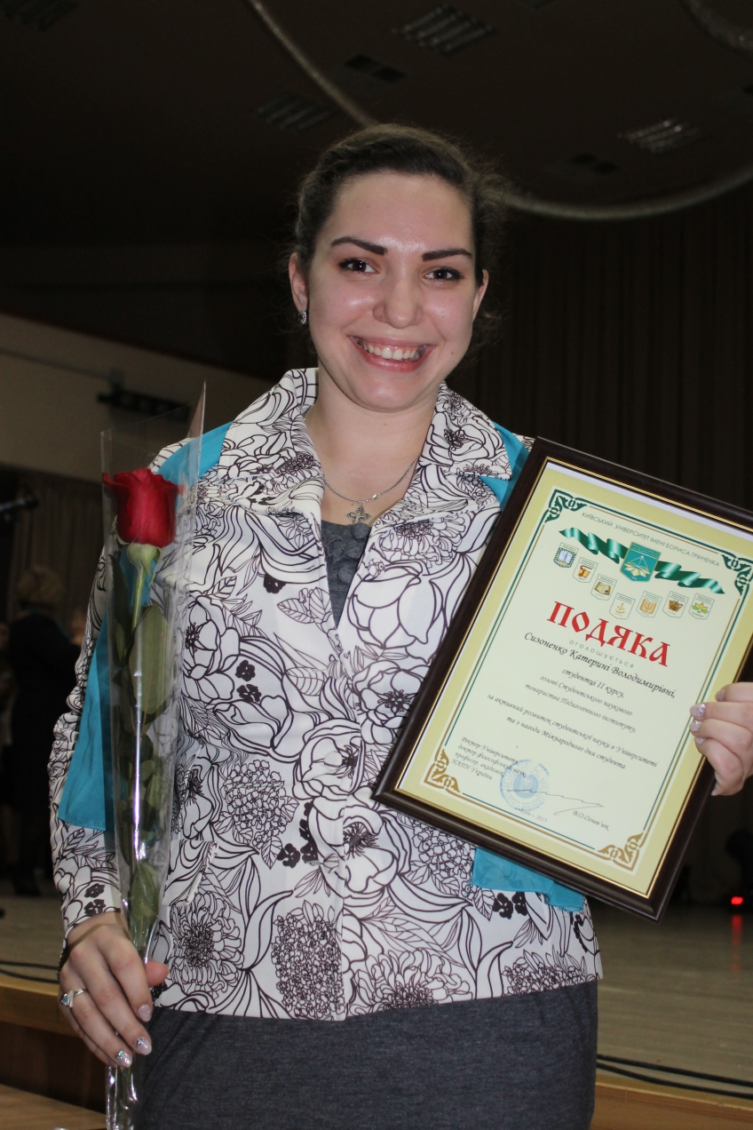 Цього ж дня в Київському університеті імені Бориса Грінченка відбулося нагородженням грамотами та подяками найкращих студентів ректором Університету Огнев’юком Віктором Олександровичем та директором Департаменту освіти і науки, молоді та спорту Добровольською Оксаною Миколаївною, серед яких були студенти Педагогічного інституту: Бачинська Валентина, Загороднюк Ірина, Колчіна Аліна, Сізоненко Катерина, Берізко Марічка та Савчук Олександра.