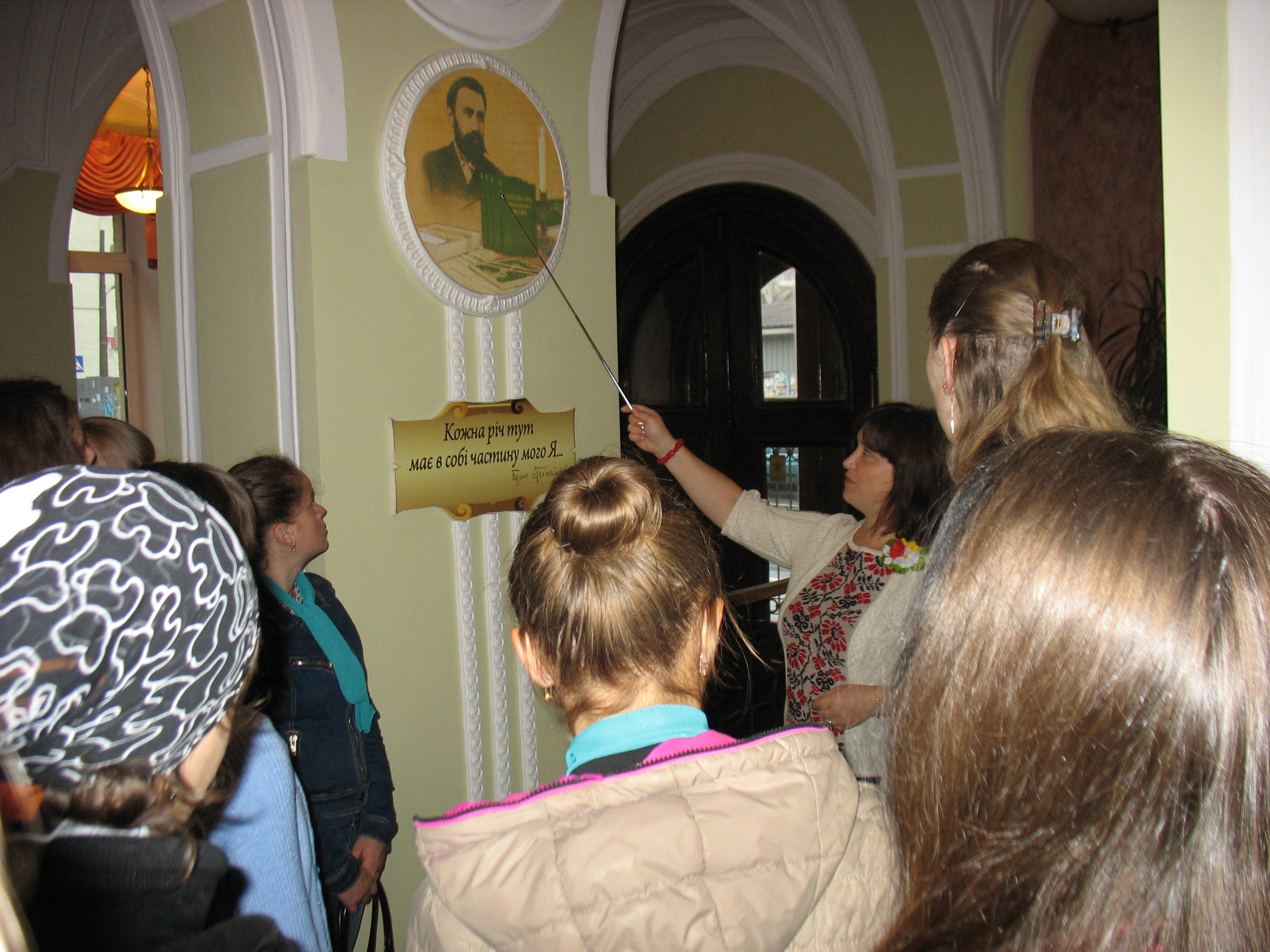Протягом вересня студенти-першокурсники Педагогічного інституту відвідали музей Бориса Грінченка, який знаходиться за адресою: вул. Воровського 18/2 у приміщенні Ректорату. Екскурсія розпочалася з символічного покладання квітів до пам’ятника українського діяча. Експозиція музею вражає кількістю оригінальних світлин, листів, видань, автором яких є сам Борис Грінченко. Історико-біографічний музей Бориса Грінченка було створено за ініціативи Вченої ради Університету. Роботу музею координує науково-дослідна лабораторія грінченкознавства. Діяльність музею сприяє долученню студентської молоді до джерел патріотизму, національних цінностей українського народу, формуванню розвиненої освіченої особистості і є значним внеском у культурному розвитку столиці.