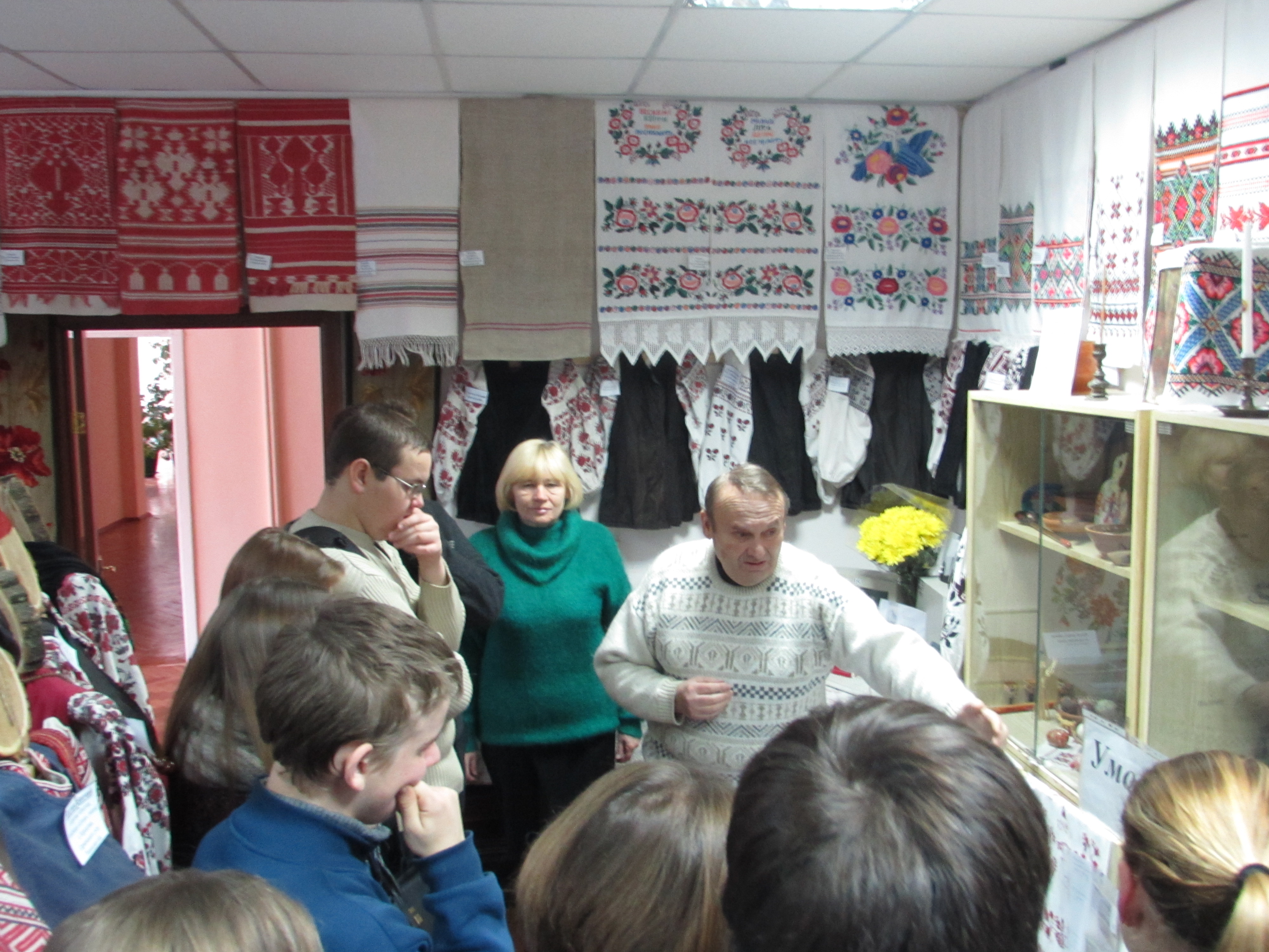 Майбутні історики з цікавістю слухали розповідь Ульянич Галини Іванівни про українські рушники та одяг із різних регіонів України. Особливу увагу студенти звернули на рідкісний старовинний посуд, предмети, що відносяться до часів трипільської культури, побутових речей, якими користувалися українці ще в ХІХ столітті.