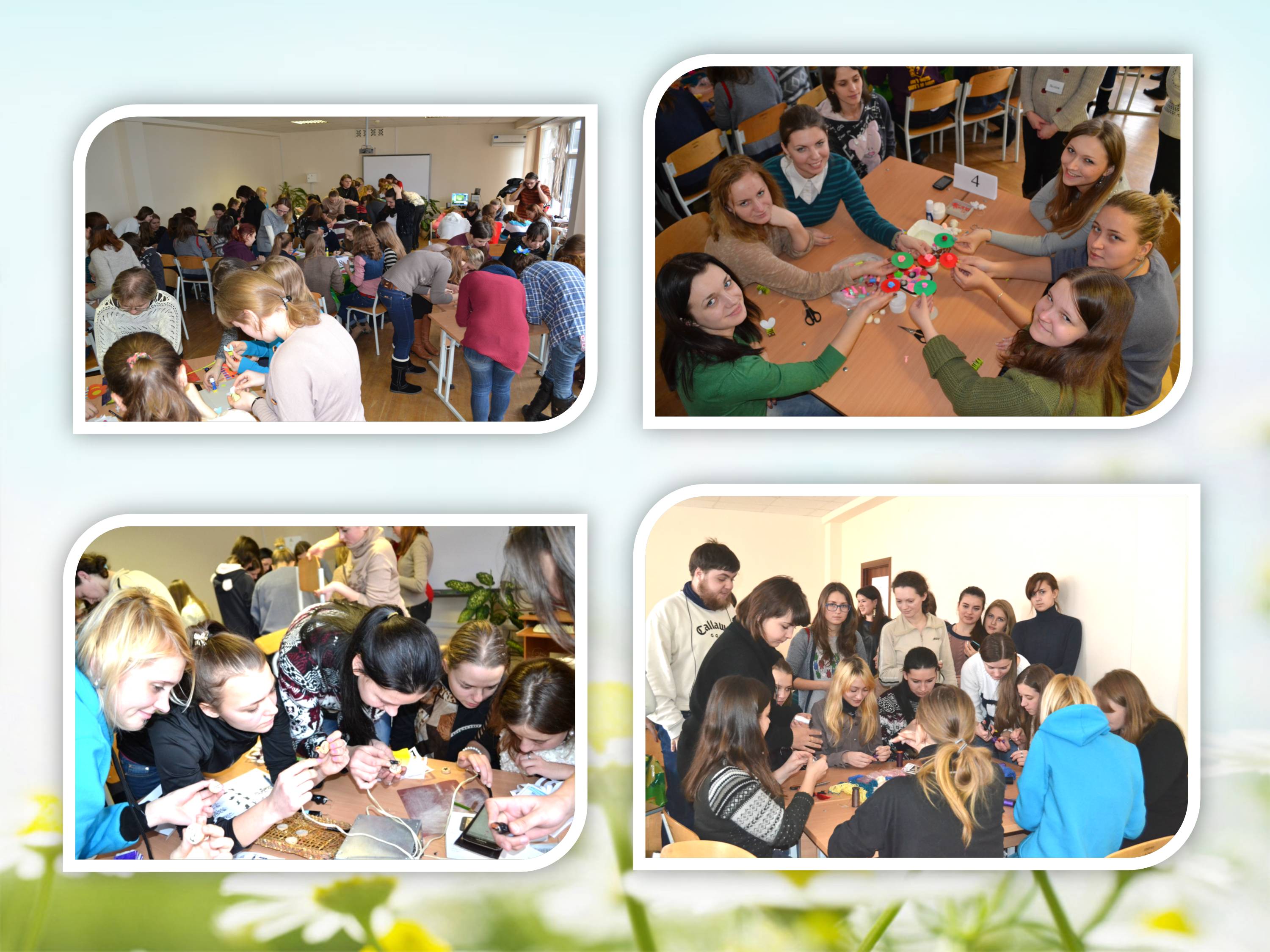 На кафедрі початкової освіти та методик природничо-математичних дисциплін Педагогічного інституту 12 грудня відбулась «Зимова майстерня», створена в межах курсу «Методика викладання освітньої галузі «Технології» (викладач – кандидат педагогічних наук, доцент Данієлян А.Я.). У майстерні плідно і творчо працювали з задоволенням 116 студентів–майстрів, серед яких студенти ІІ курсу спеціальності «Початкова освіти» та студенти V курсу спеціальності «Дошкільна освіта».