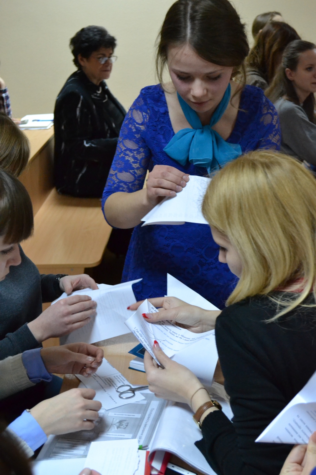 Кошман П.Я. уміло організував роботу студентів, поділивши їх на творчі групи, кожній з яких було запропоновано певне завдання, спрямоване на виготовлення виробів з використанням техніки оригамі. Студенти в ході роботи вдало поєднували відеофрагменти уроків вчителів шкіл Києва, фрагмети власних уроків, елементи рольової гри. Після кожного етапу роботи було надано методичний коментар, опираючись на матеріали Державного стандарту загальноосвітньої початкової школи.