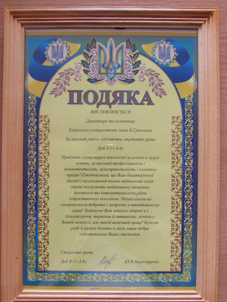 Дипломи отримали більше 200 випускників..Вдячні бакалаври вручили директору Подяку і солодкий подарунок.