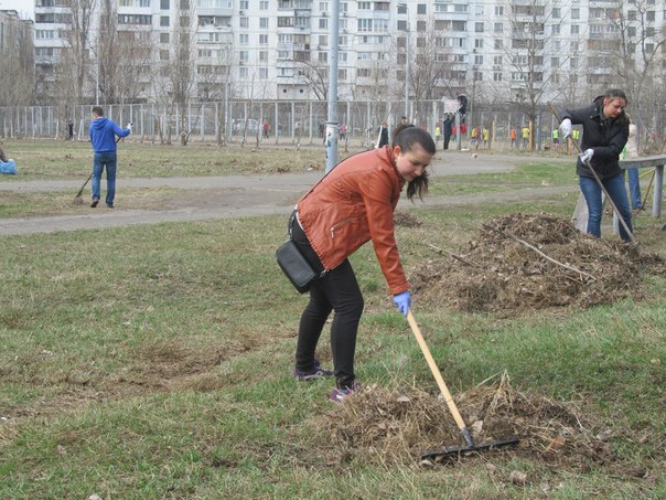 У суботу 28 березня 2015 року на стадіоні «Русанівець» було багатолюдно. Тут зібралися небайдужі люди не для того, щоб поганяти м’яча чи побігати наперегони… Студенти і викладачі Педагогічного інституту на чолі з проректором Київського університету імені Бориса Грінченка Олексієм Борисовичем Жильцовим провели толоку - загрібали, підмітали, виносили весь рукотворний непотріб і природні залишки, які місцями перетворилися на сміттєзвалище… Наші старання допомогли природі сповна дихнути животворним весняним повітрям, а вона з вдячністю подарувала нам миловидну зелень першої весняної травички. Також хочеться відзначити, що вже традиційно разом із грінченківцями на одному полі працювала команда депутата Київської міської ради Олеся Маляревича. Разом – сила!