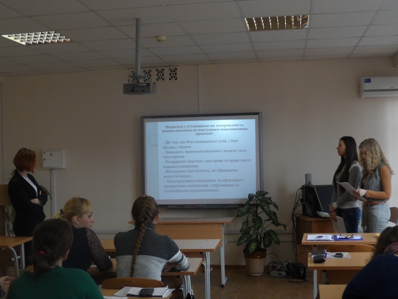 На семінарі студенти під час парної, групової та індивідуальної роботи з’ясували сутність поняття «толерантність педагога», його складові, ознаки толерантного педагога, типи взаємодії, які сприяють толерантності.