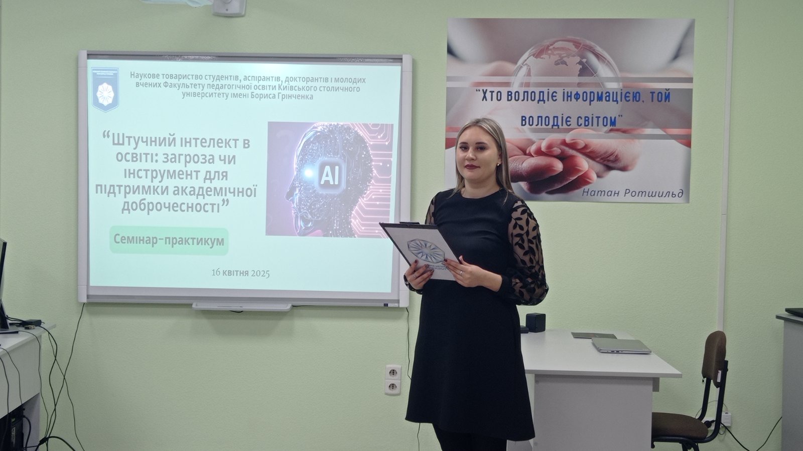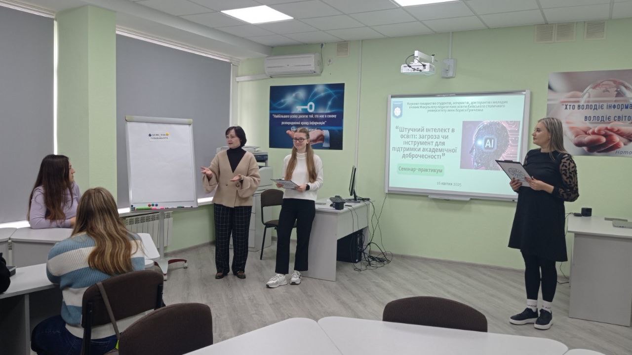 16 квітня 2025 року відбувся семінар-практикум на тему «Штучний інтелект в освіті: загроза чи інструмент для підтримки академічної доброчесності», організований Науковим товариством студентів, аспірантів, докторантів і молодих вчених Факультету педагогічної освіти Київського столичного університету імені Бориса Грінченка.