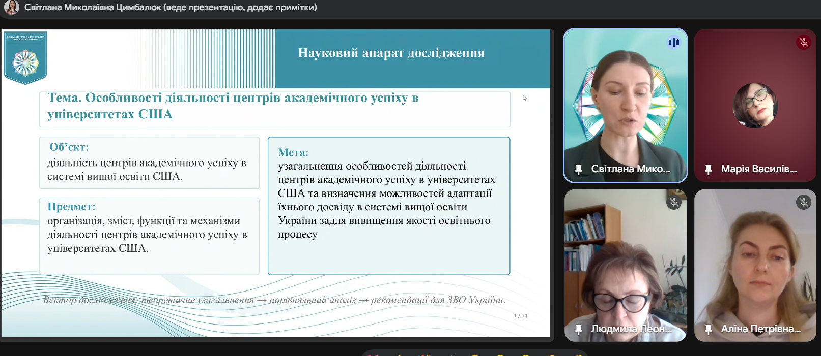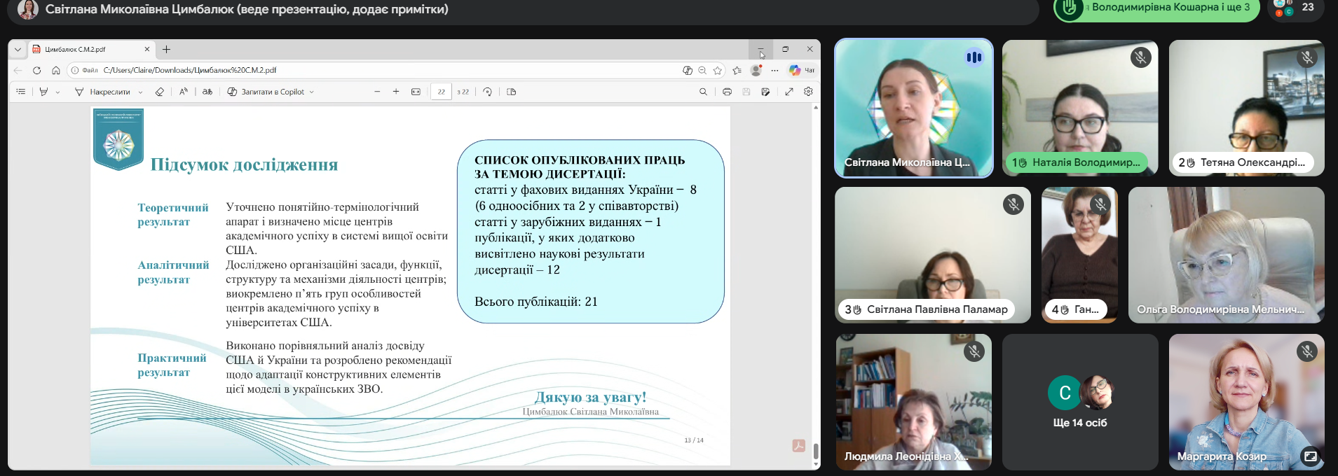 Публічна презентація дисертації та наукових публікацій Цимбалюк С.М.
