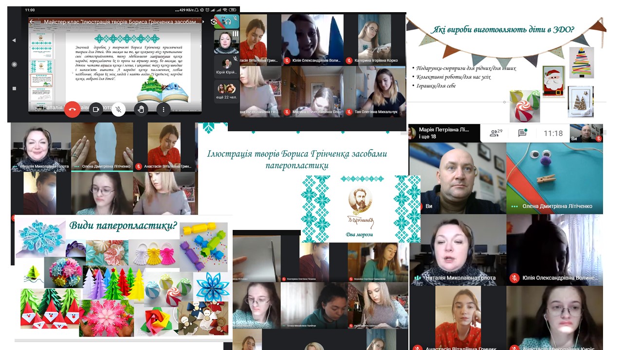 9 грудня 2020 року з нагоди відзначення Дня Університету в Педагогічному інституті відбувся майстер-клас «Ілюстрація творів Бориса Грінченка засобами паперової пластики», організований та проведений кафедрою дошкільної освіти та кафедрою педагогіки та психології.
