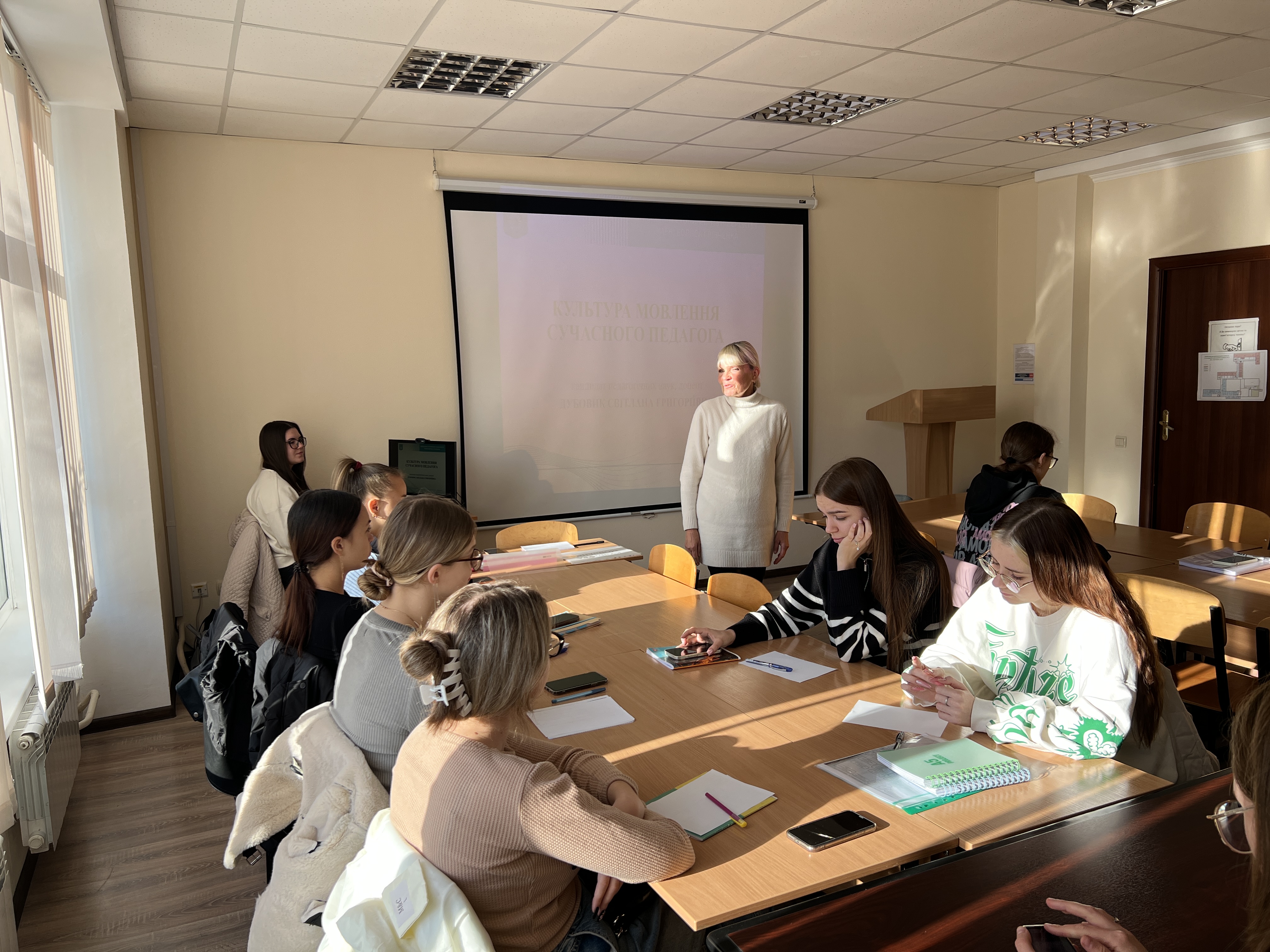 Модератор тренінгу “Культура мовлення сучасного педагога” доцент кафедри початкової освіти, кандидат педагогічних наук Світлана Дубовик, акцентувала увагу студентів першого курсу на особливостях коректної комунікації як однієї з цінностей корпоративної культури.