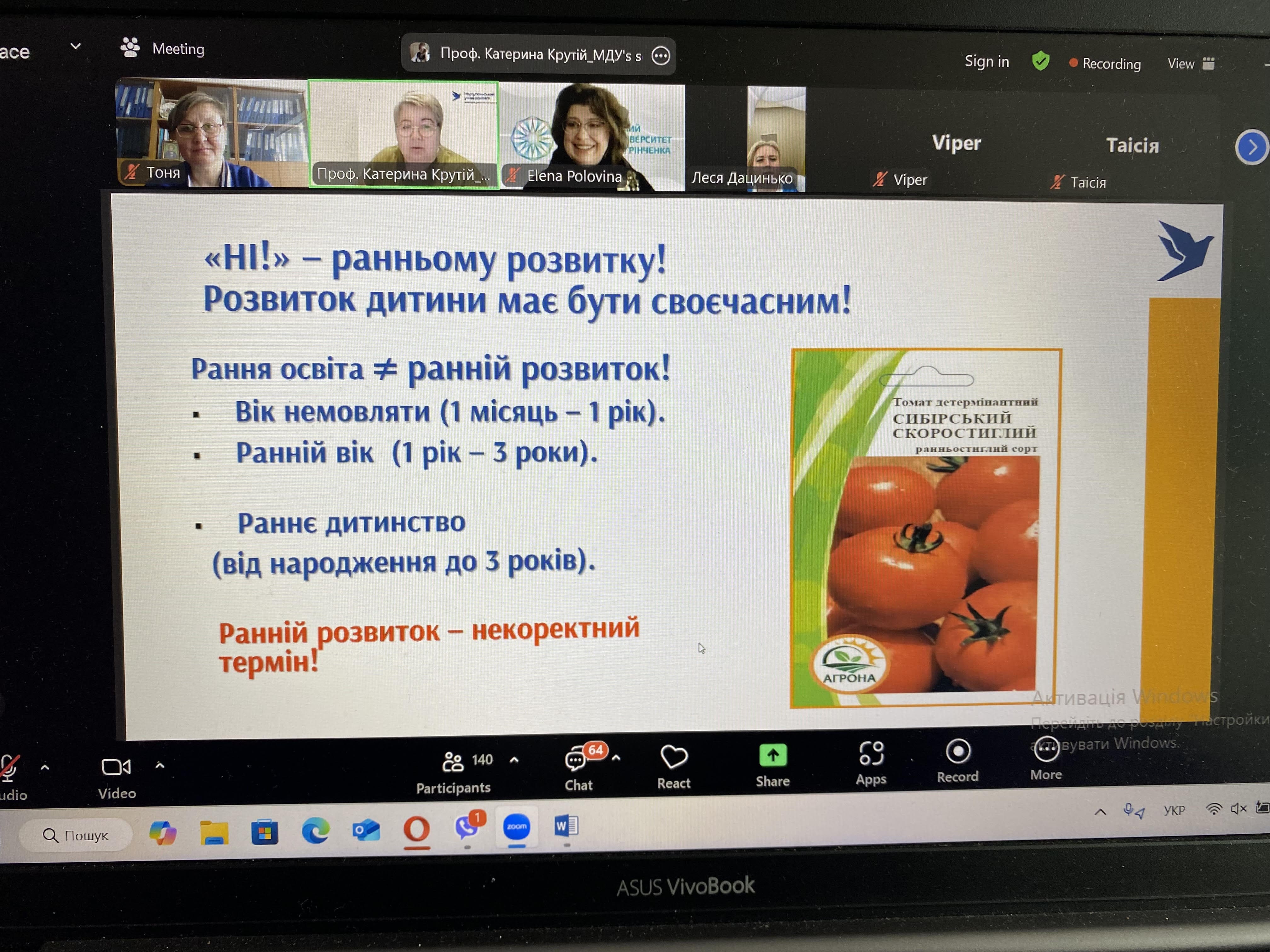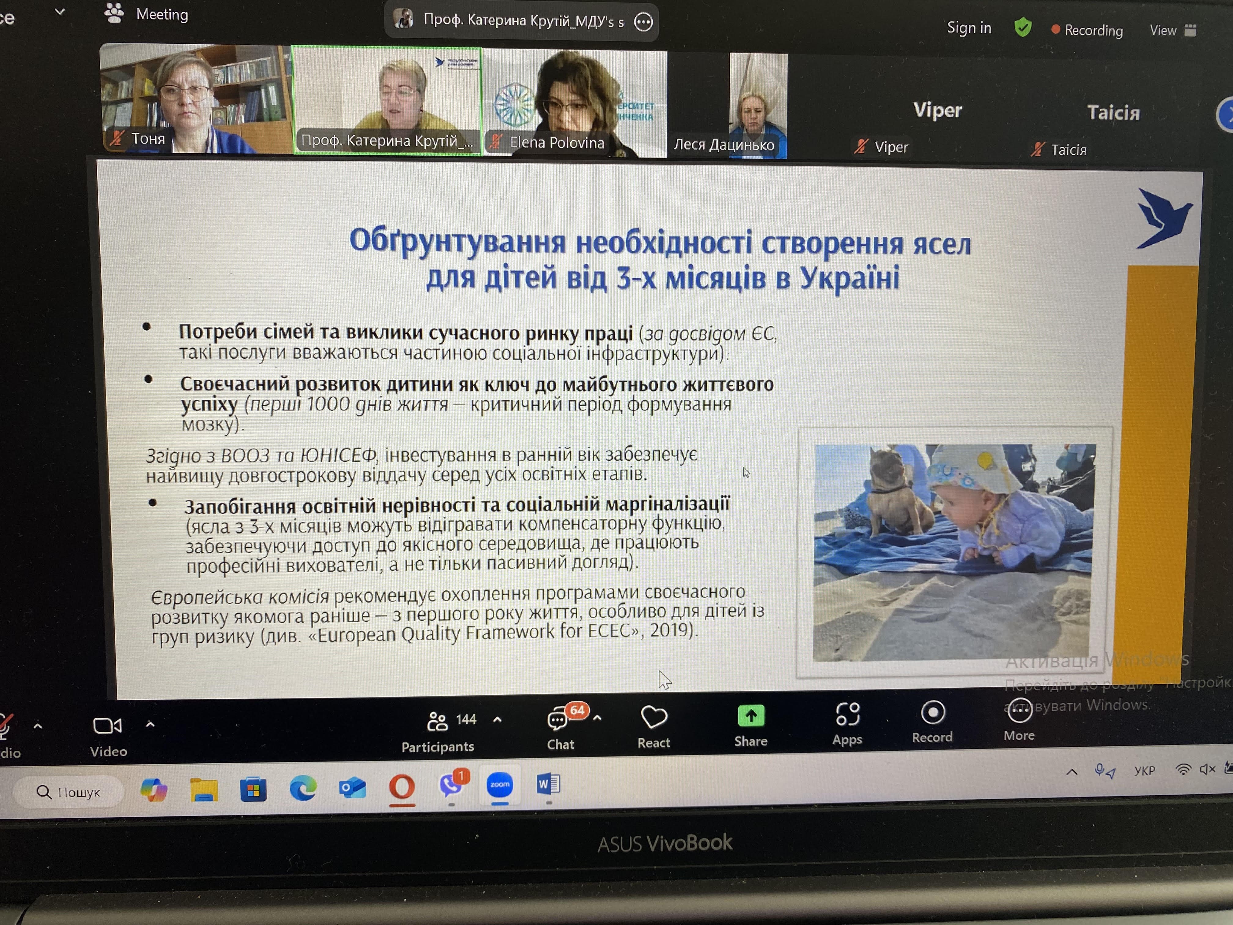 14 травня 2025 року, за ініціативи кафедри дошкільної освіти, проведено гостьову лекцію на тему «Необхідність створення ясел для дітей від 3-х місяців в Україні, чи можливість доступу до якісного освітнього середовища?». Запрошений лектор- Катерини КРУТІЙ, доктор педагогічних наук, професор, професор кафедри дошкільної освіти Маріупольського державного університету, член експертної групи з підготовки Закону України «Про дошкільну освіту».