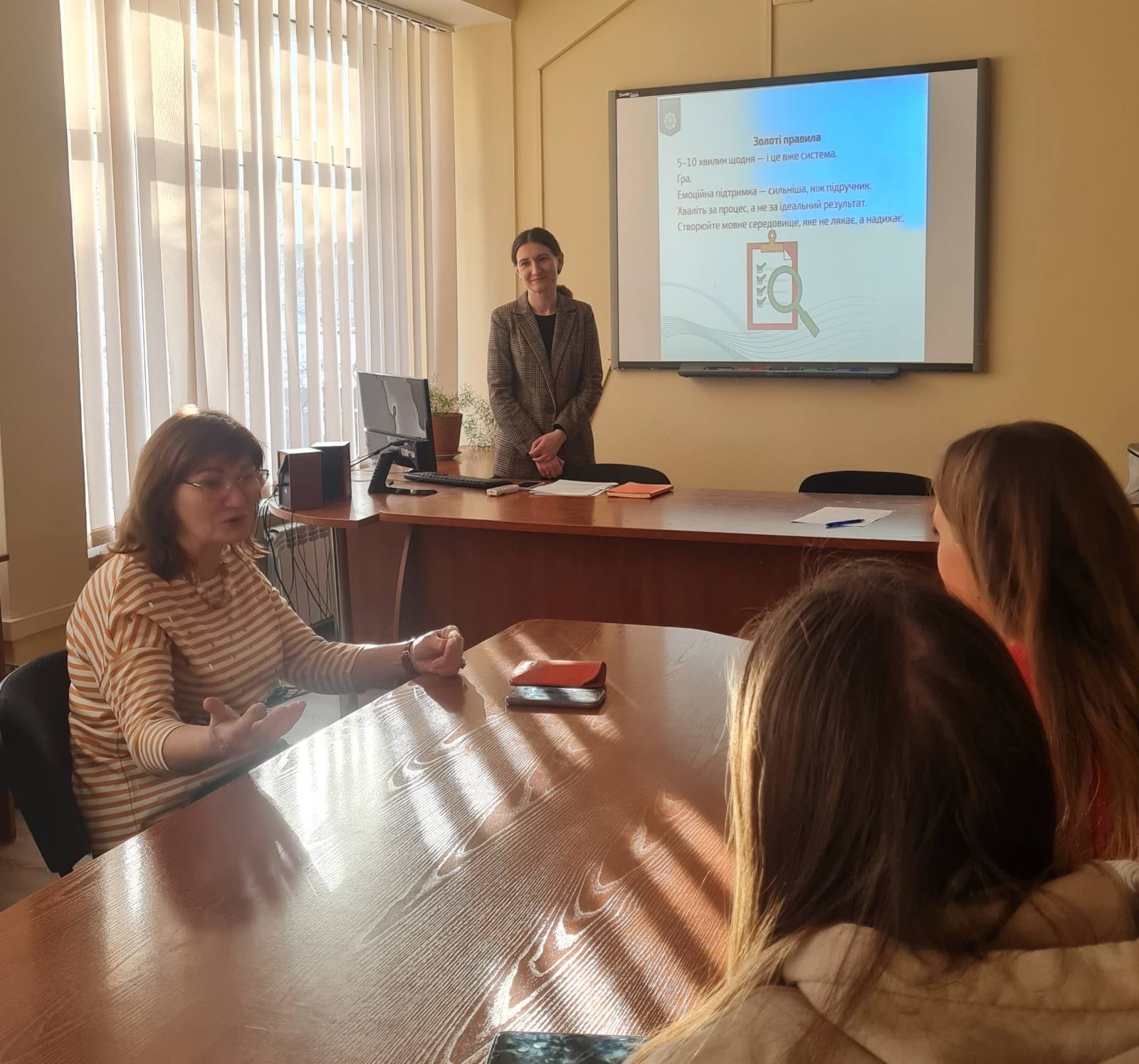 У перебігу тематичного лекторію «Іноземна мова як інструмент розвитку креативності дитини» батьки дізнались, як взаємодіють мова-емоції-уявлення та впливають на розвиток креативності дитини. Дорослі ознайомилися із сучасними методами та технологіями, що допомагають перетворити вивчення іноземної мови в інструмент розвитку креативності дитини. Також гостям було запропоновано розглянути практичні приклади, як підтримати дитину в процесі розвитку її креативності.