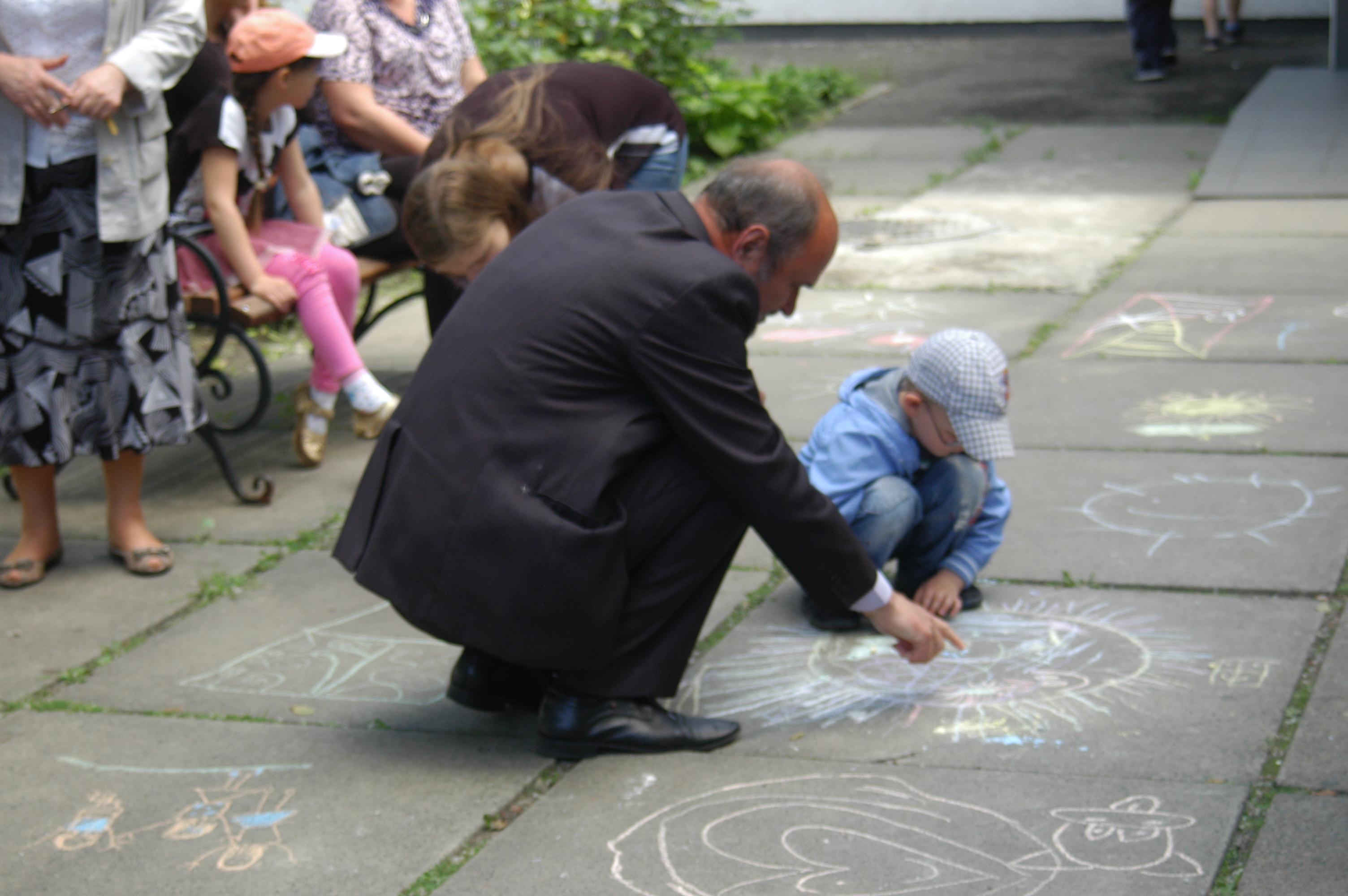 Традиційно малюки залишили сонячні подарунки нашому Університету – алея біля входу квітне дитячими малюнками, а щасливі дитячі долоньки розмалювали плакат до свята, що зараз прикрашає стіни їх садочка!