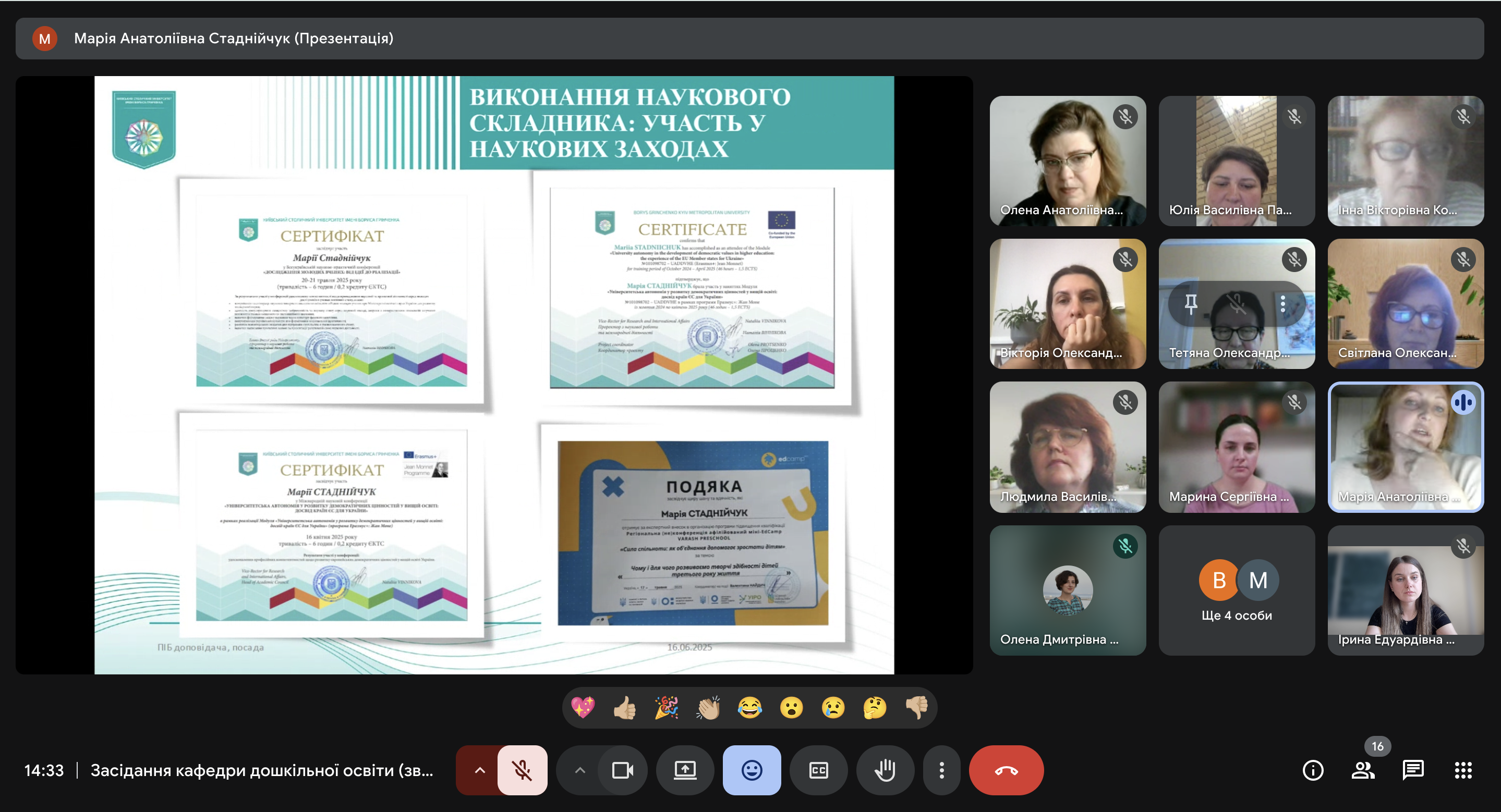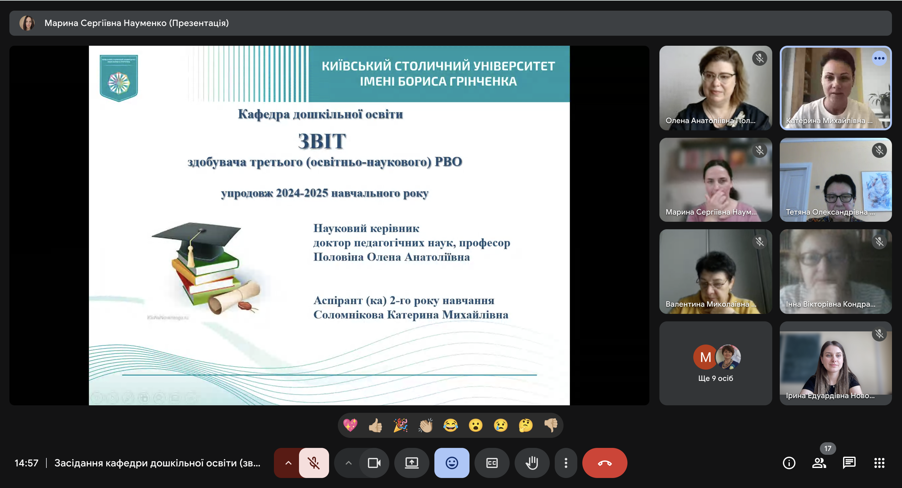 17 червня 2025 року відбулося засідання кафедри дошкільної освіти. Одним із питань порядку денного було: розгляд річних звітів здобувачів третього освітньо-наукового рівня вищої освіти спеціальності 012 Дошкільна освіта (І-й, ІІ-й, ІІІ-й, ІV-й рік навчання).