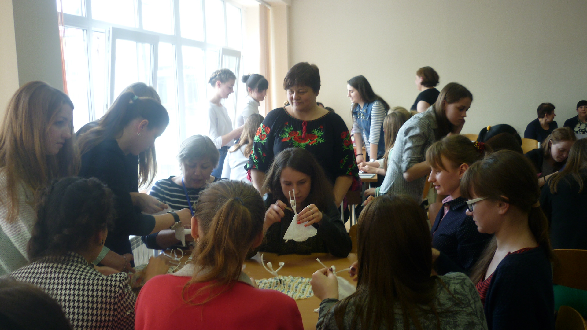 Форма організації відповідала заняттю комбінованого типу з використанням методу «Джигсо» (метод розвитку критичного мислення). На основі цього методу було організовано майстерню, в якій модераторами виступили студенти групи ДОб-2-15-4.0д. Дівчата організовували процес навчання в підгрупах, здійснювали попередню підготовку до роботи. Робота в групах, які змінювались кожні 7-8 хвилин, завершувалась виготовленням виробу кожним учасником.