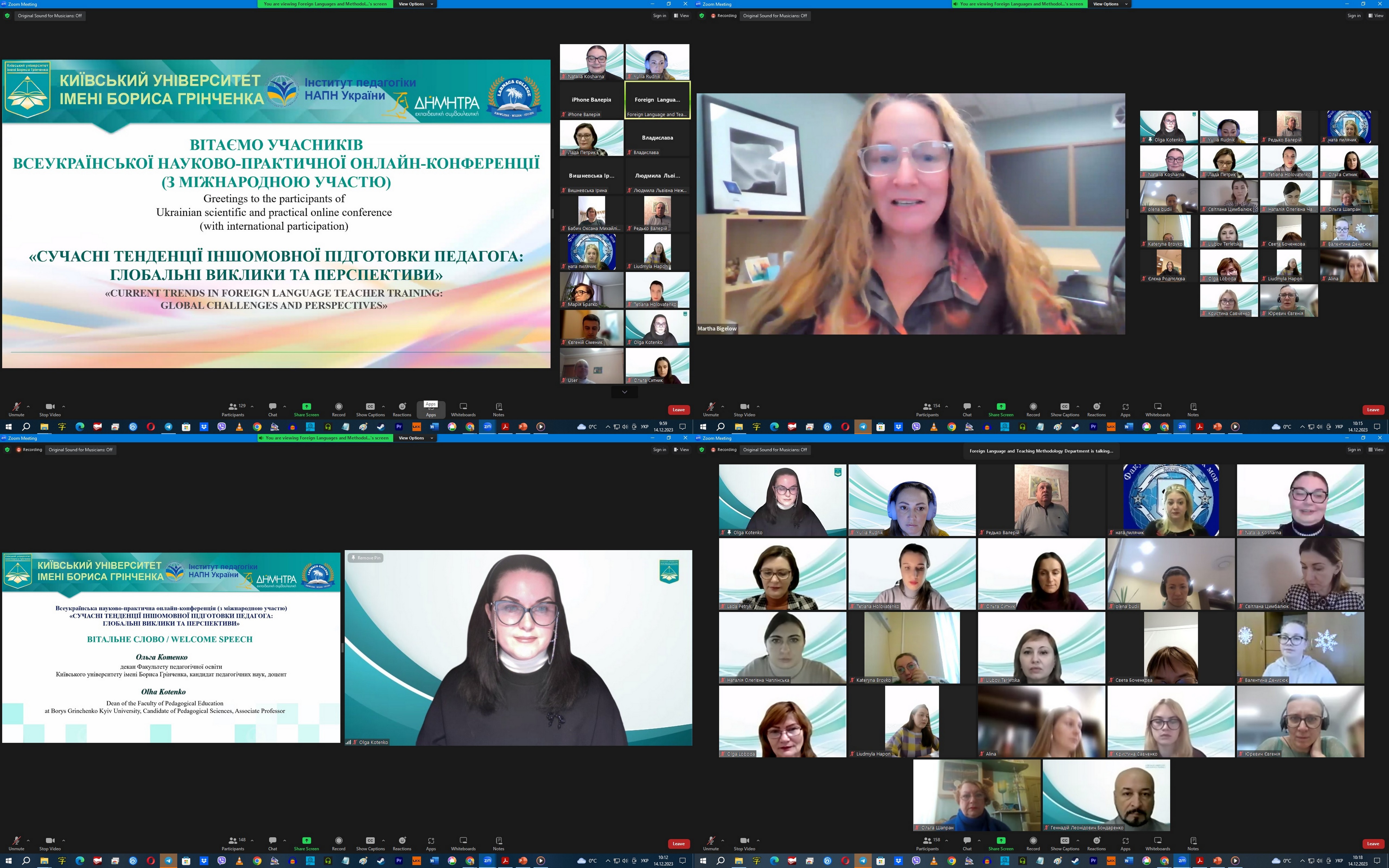З вітальними словами до присутніх звернулись: Ольга КОТЕНКО, декан Факультету педагогічної освіти Київського університету імені Бориса Грінченка, кандидат педагогічних наук, доцент; Марта Бігелоу, завідувач кафедри освітніх програм та дидактики Коледжу освіти та людського розвитку Університету Міннесоти (США), професор кафедри освітніх програм та дидактики, доктор філософії.