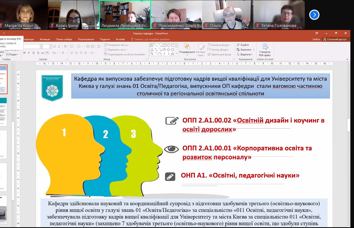 Тема доповіді: «Сучасний контекст трансформацій педагогічної освіти». - Желанова Вікторія — доктор педагогічних наук, професор кафедри освітології та психолого-педагогічних наук Київського столичного університету імені Бориса Грінченка, гарант освітньо-професійної програми 011.00.04 «Освітній дизайн і коучинг в освіті дорослих».