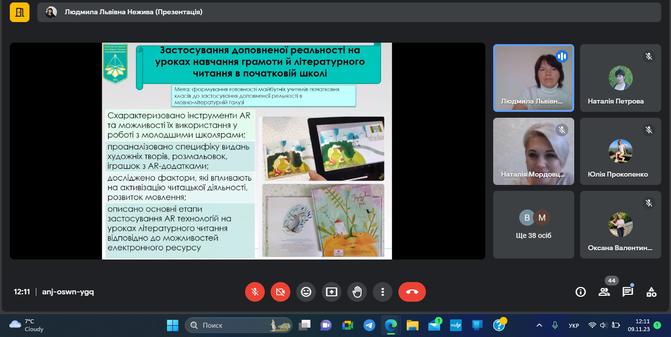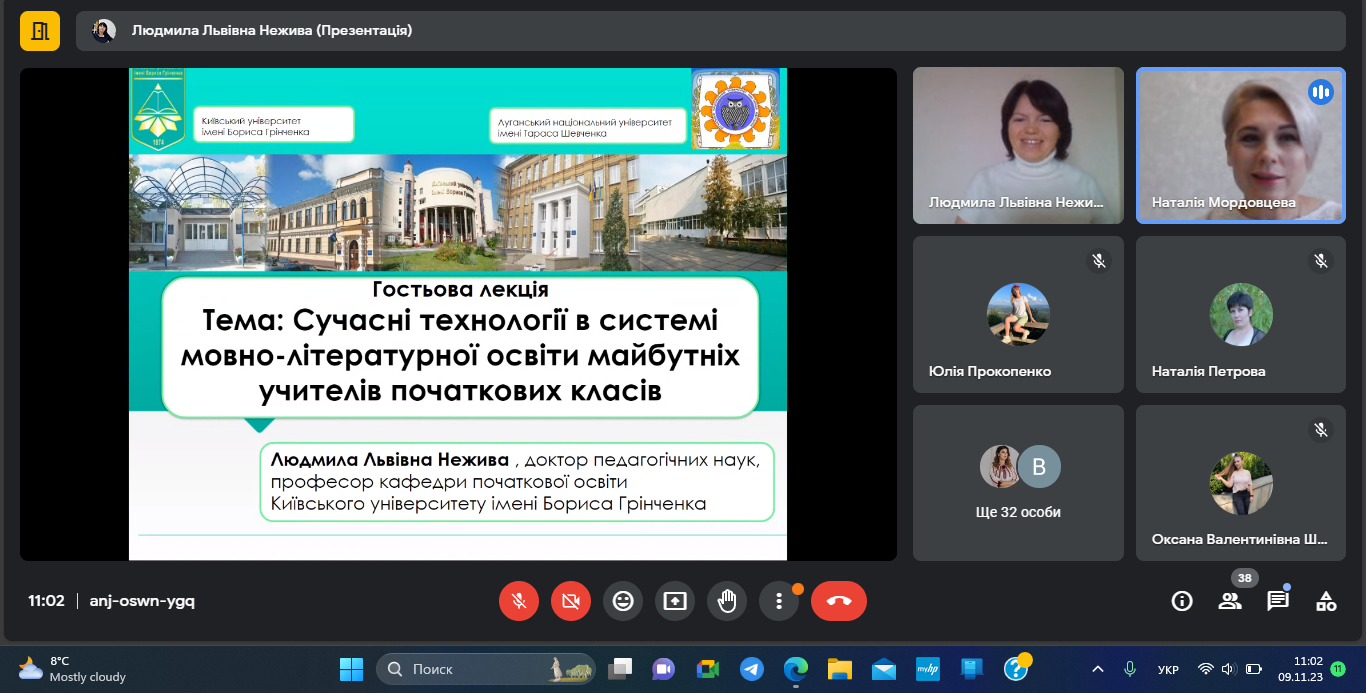 09 листопада 2023 року відбулася гостьова онлайн-лекція з теми «Сучасні технології в системі мовно-літературної освіти майбутніх учителів початкових класів» для здобувачів спеціальностей 013 Початкова освіта, 013 Початкова освіта (Українська мова і література) другого (магістерського) рівня вищої освіти Навчально-наукового інституту педагогіки і психології Луганського національного університету імені Тараса Шевченка.