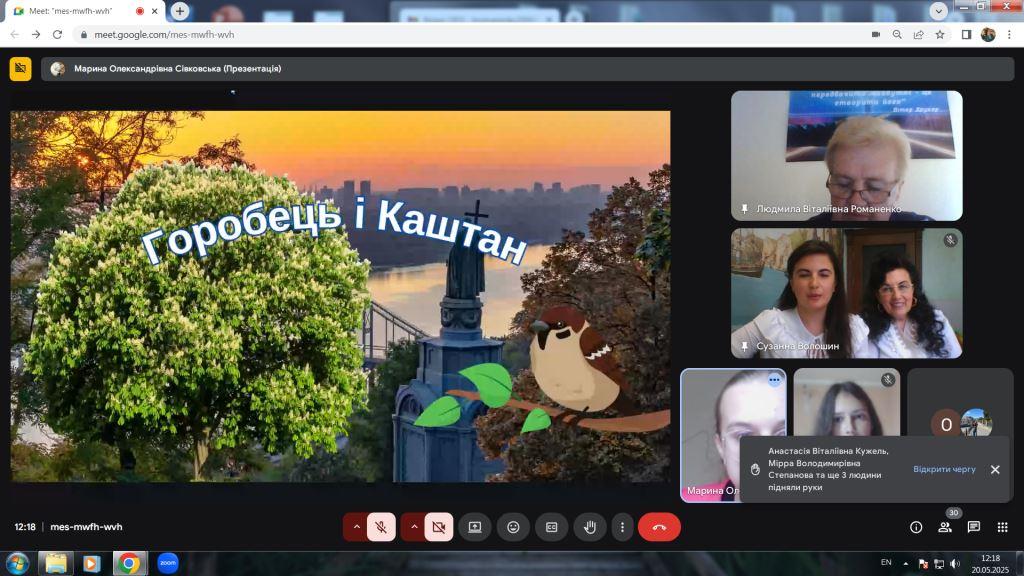 20 травня 2025 року за ініціативи кафедри початкової освіти Факультету педагогічної освіти Київського столичного університету імені Бориса Грінченка в межах вивчення навчальної дисципліни «Математична і природнича освіта: Природознавство з методикою навчання» проведено гостьовий онлайн-семінар із теми «Екологічне виховання учнів закладів загальної середньої освіти за еко(біо) центричною парадигмою» для студентів 2 курсу ОПП 013.00.01 Початкова освіта першого (бакалаврського) рівня вищої освіти.