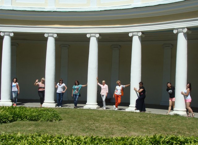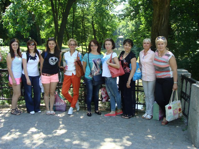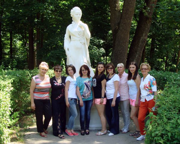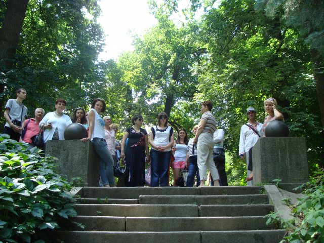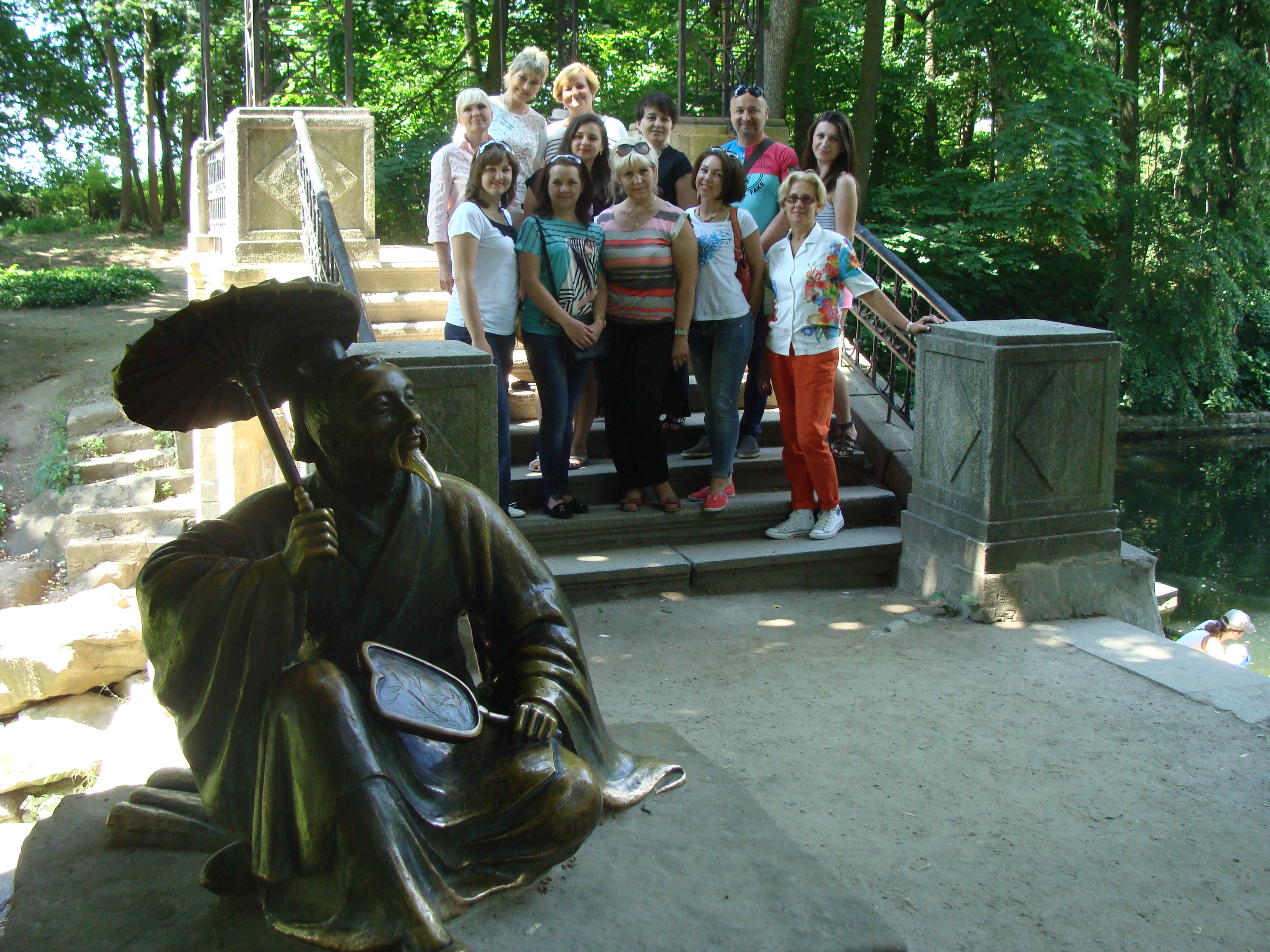 Під час екскурсії відвідали Великий луг, з якого на 20 км розпорошені мережі алей, прикрашені парковою архітектурою і скульптурою (Романтичні руїни, Китайський міст, Джерело Лева), мали змогу насолодитися чарівністю інструментальної музики на території колонади, помилуватися парковими мармуровими скульптурами, посидіти і помріяти під тінню столітніх дерев...