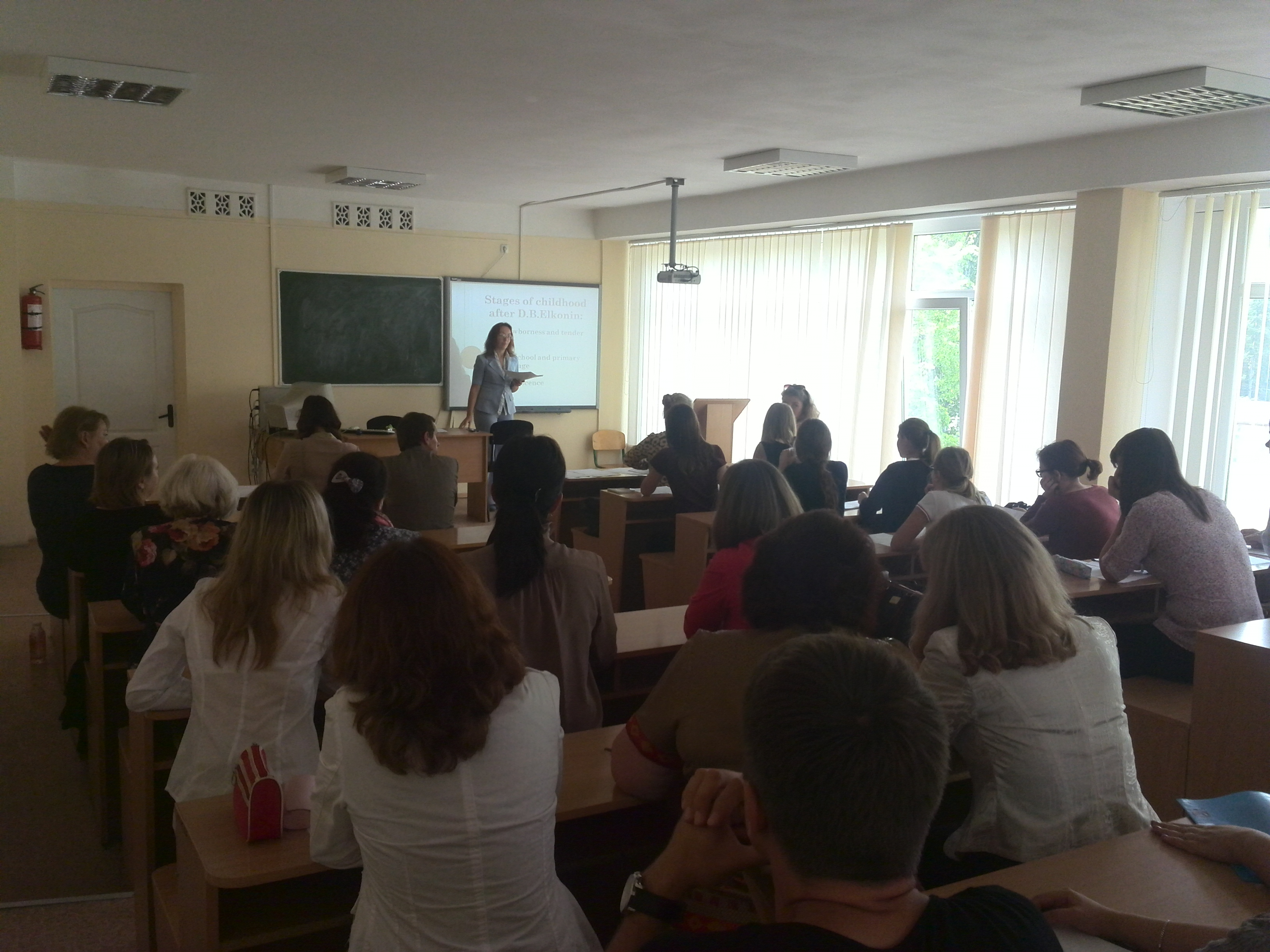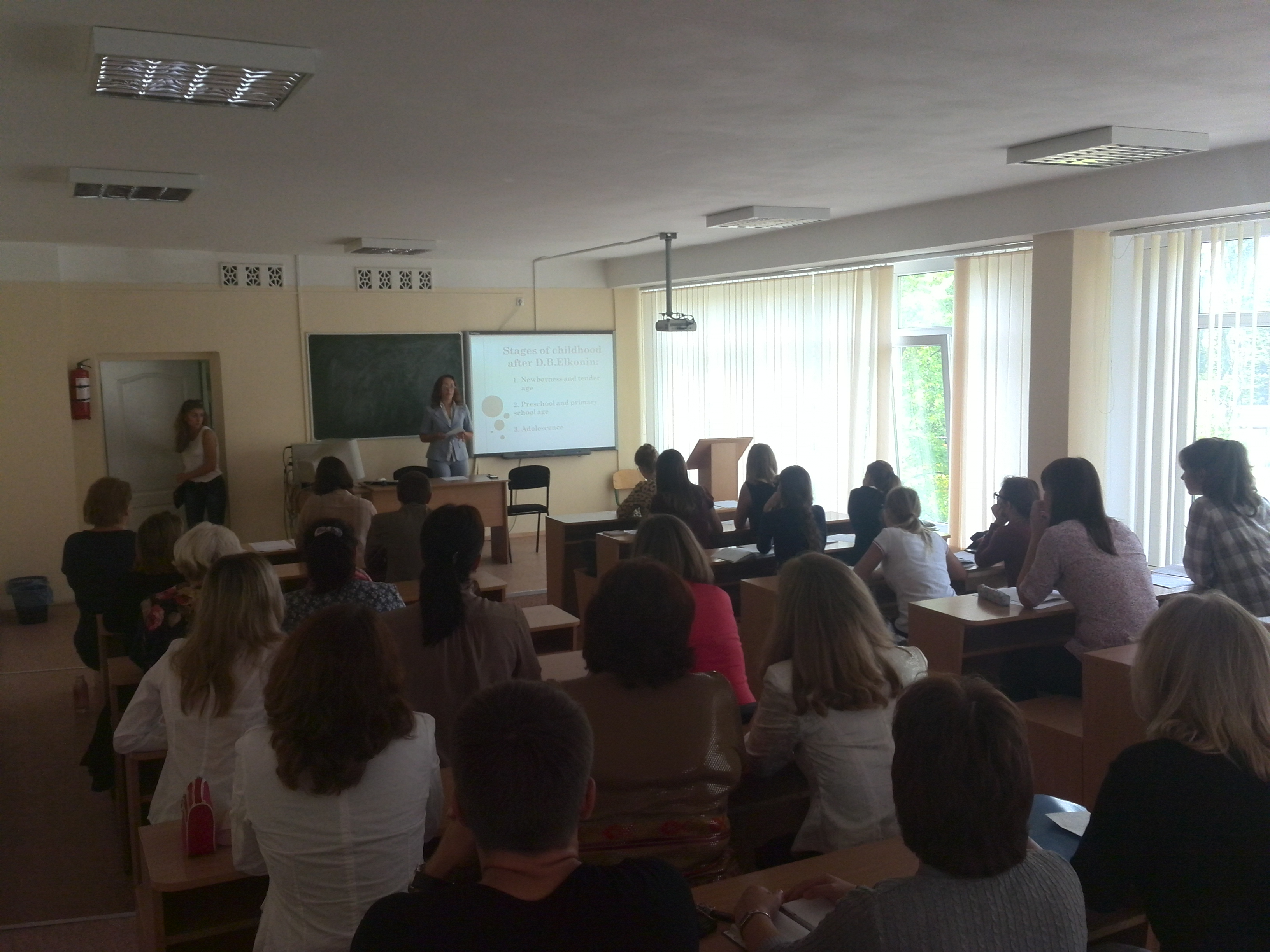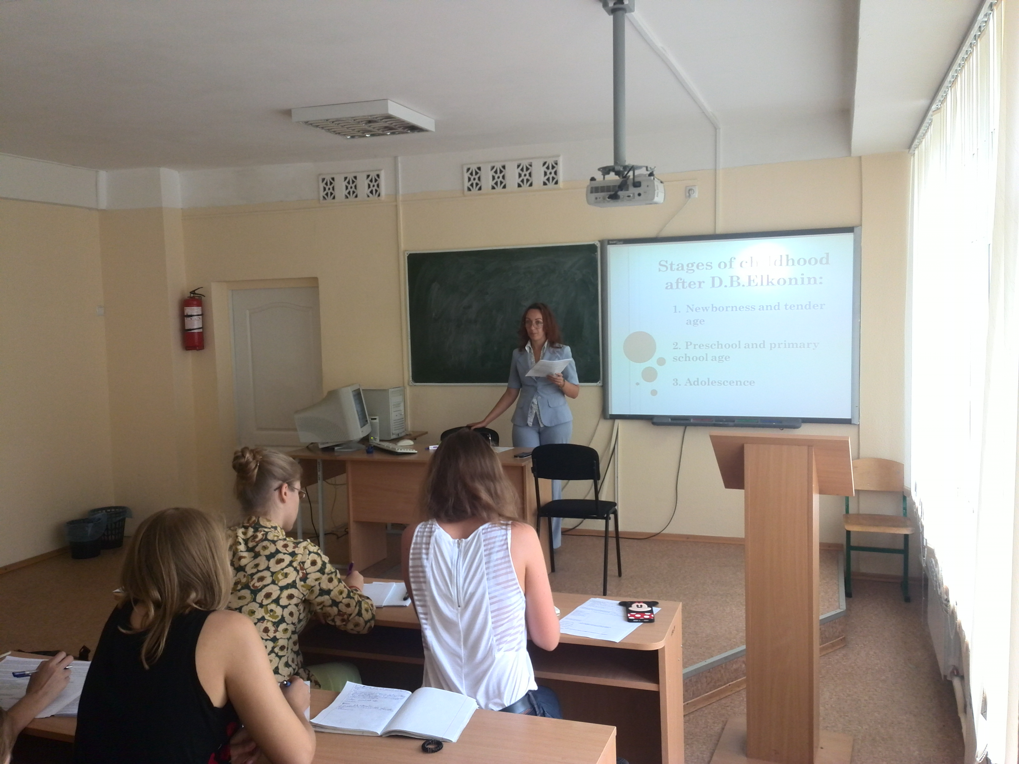 Під час лекційного заняття було використано відеофрагменти (англійською мовою) з психології розвитку дитини. З метою активізації уваги студентів під час заняття було використано методи експрес-опитування, елементи дискусії, а також навчання студентів через практичний досвід (шляхом виконання і інтерпретації ними елементів тестування та методу проективних малюнків у дитячій психології) – англійською мовою.