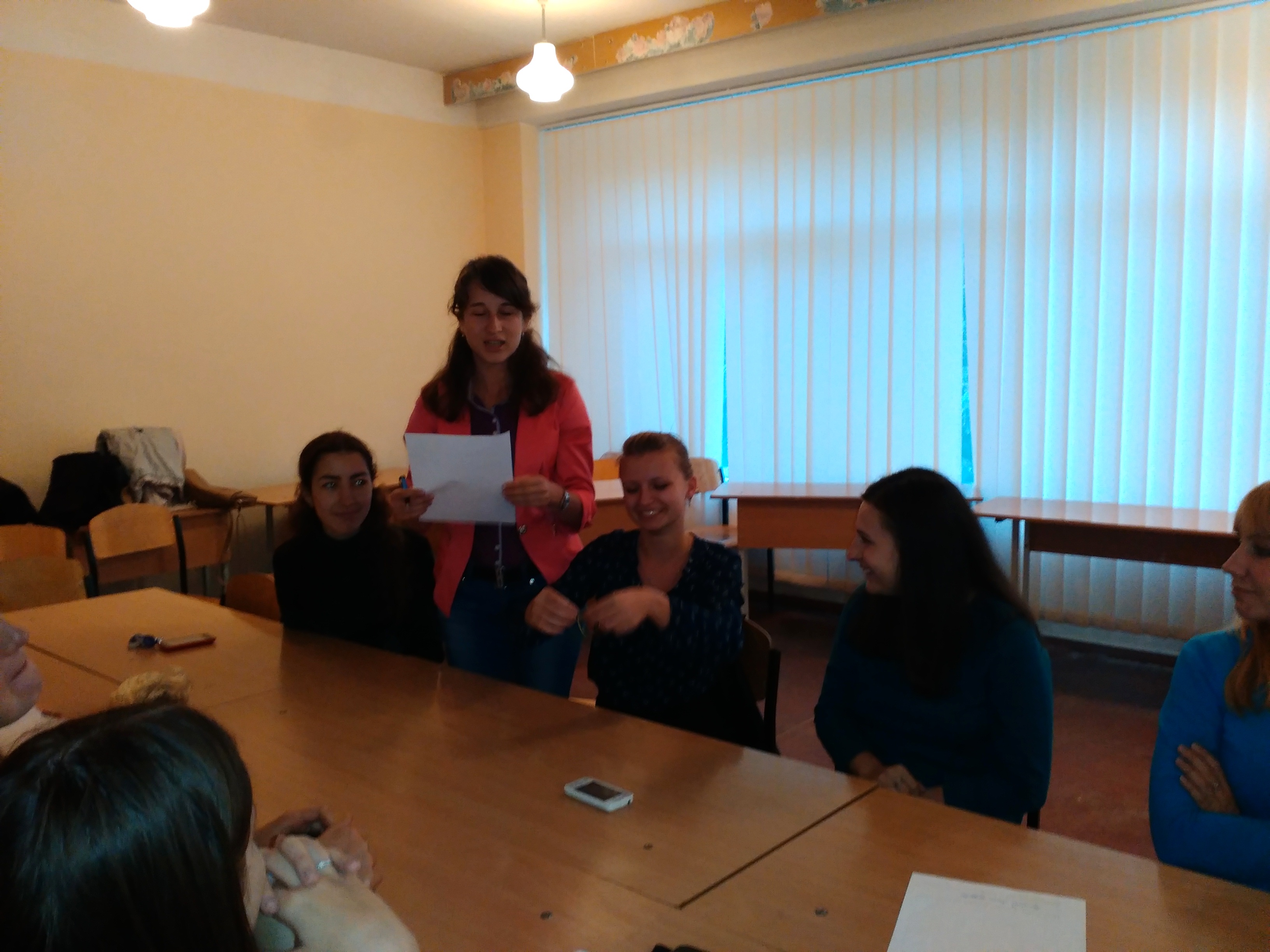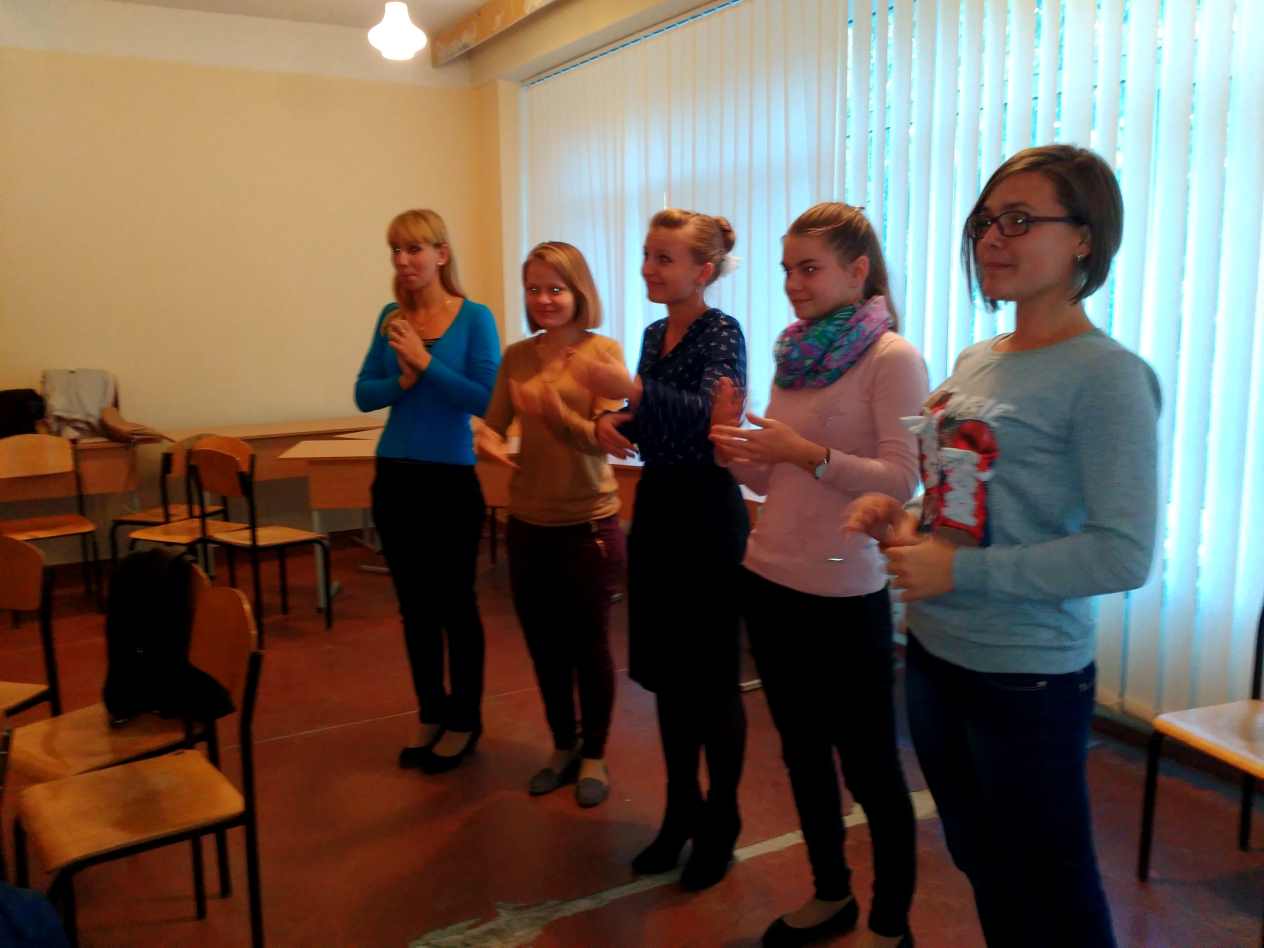 07 жовтня 2015 року Журавльовою Анастасією, членом Студентського наукового товариства Педагогічного інституту було проведено психологічний тренінг зі студентами IV курсу групи ПОб-2-14-2.0д. Він був спрямований на дослідження творчих здібностей учасників групи, усвідомлення ними свого творчого потенціалу та креативності, розвиток навичок і вмінь керувати креативним процесом, подолання стереотипів та бар’єрів, які обмежують творчий потенціал, розвиток навички аналізу, здатність фантазувати, уявляти образи, актуалізувати й активізувати процеси особистісного творчого розвитку, вміння застосовувати свій творчий потенціал та усвідомлювати характеристики креативного середовища.