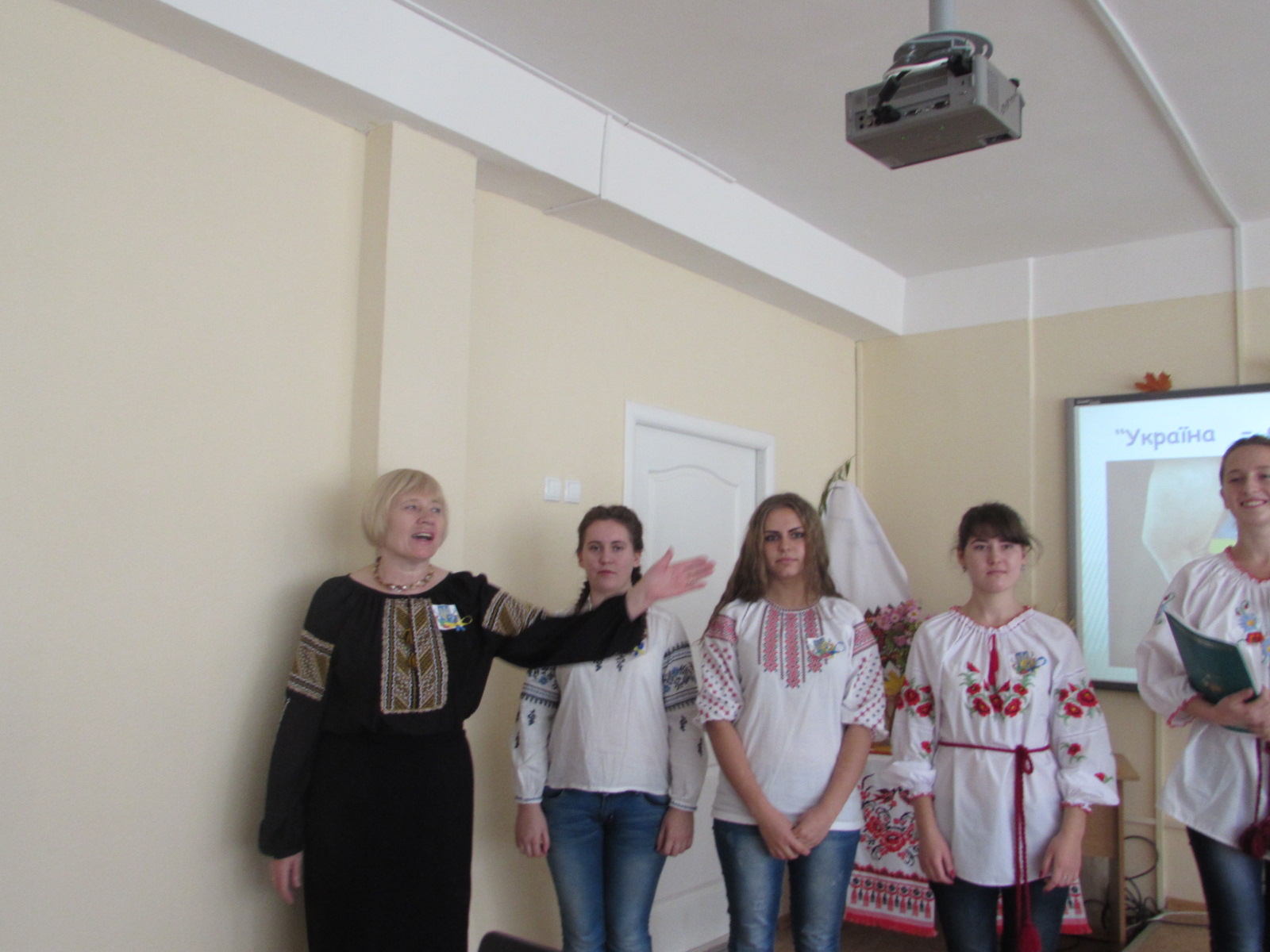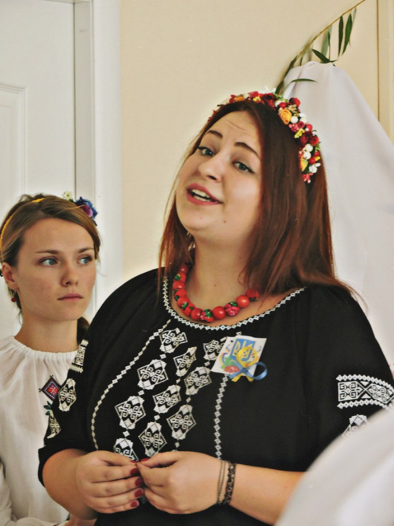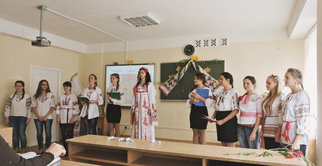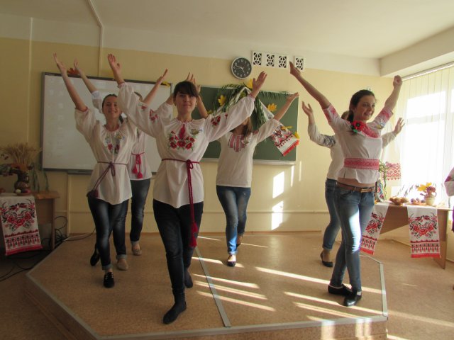 Активну участь у підготовці та проведенні виховного заходу взяли студенти I курсу дошкільної та початкової освіти. Вони святково прикрасили аудиторію. Верба, калина, квіти, рушники, коровай, емблеми з національними символами створили атмосферу українського народного свята.