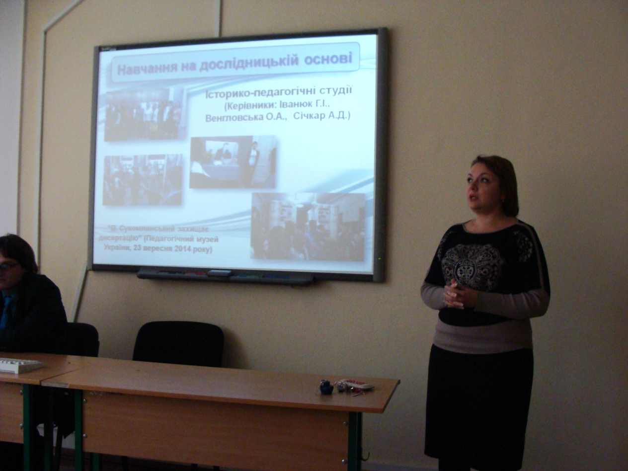 Викладачі представили результати своєї наукової роботи (організація та участь у Міжнародних і Всеукраїнських науково-практичних конференціях, круглих столах, тренінгах, науково-практичних семінарах, публікації, підручники, посібники тощо) та здобутки студентів (призові місця у Всеукраїнській олімпіаді з педагогіки, конкурсі студентських наукових робіт, публікації тощо).