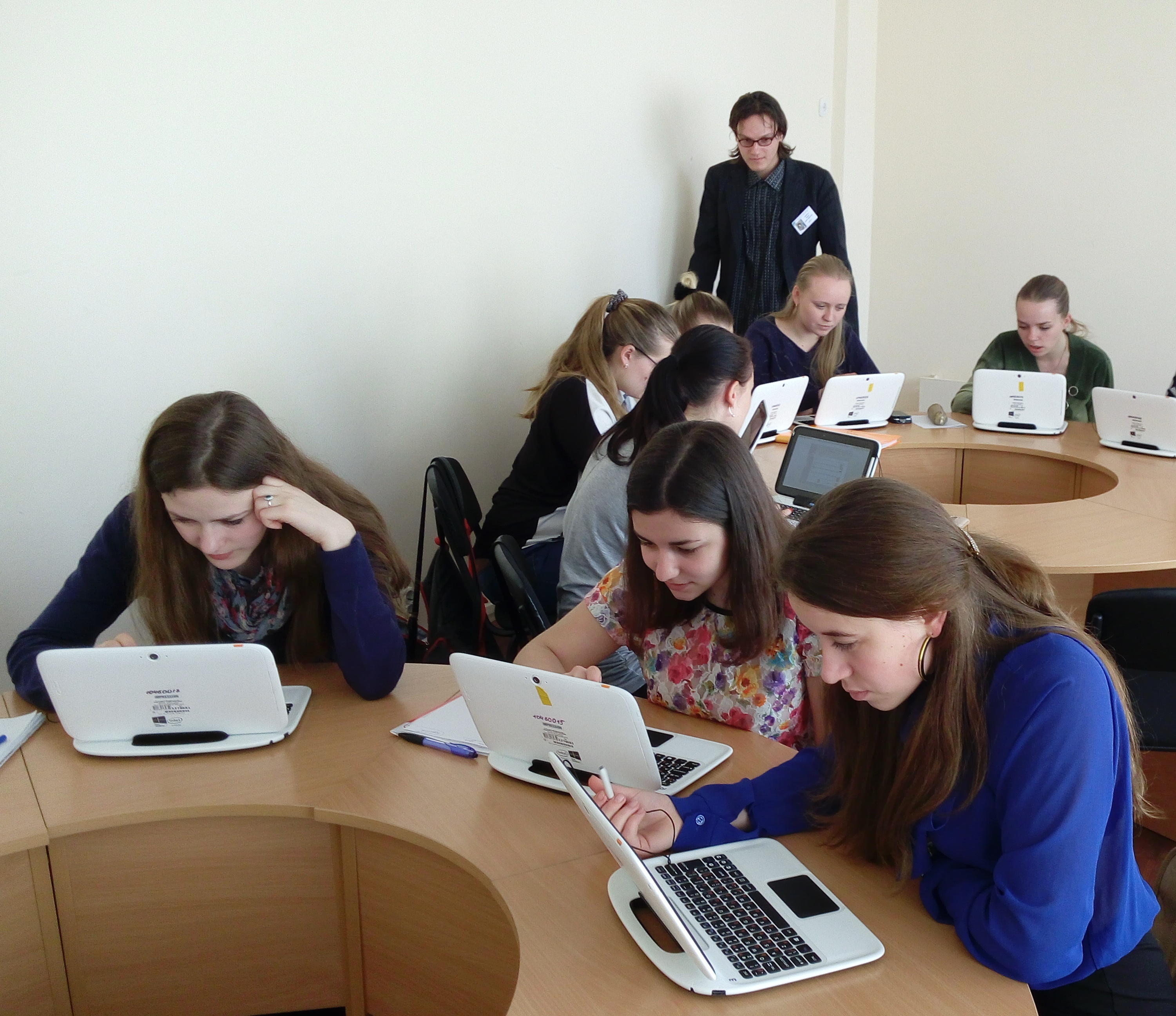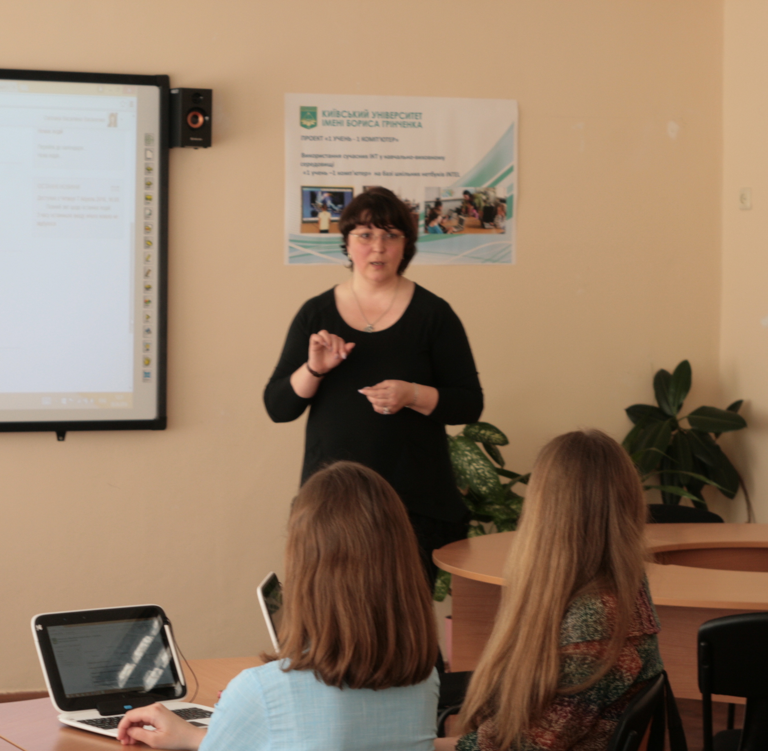 Викладач кафедри початкової освіти та методик гуманітарних дисциплін Педагогічного інституту С.В. Василенко проводить практичні заняття зі студентами ІІІ курсу денної форми навчання напряму підготовки «Початкова освіта» за технологією «1 учень – 1 комп’ютер». Під час заняття майбутні вчителі початкової школи навчаються будувати ефективну комунікацію з усіма суб’єктами інформаційного простору, оволодівають уміннями створювати особистісно орієнтовані умови та сприятливе освітнє середовище для майбутньої професійної діяльності.