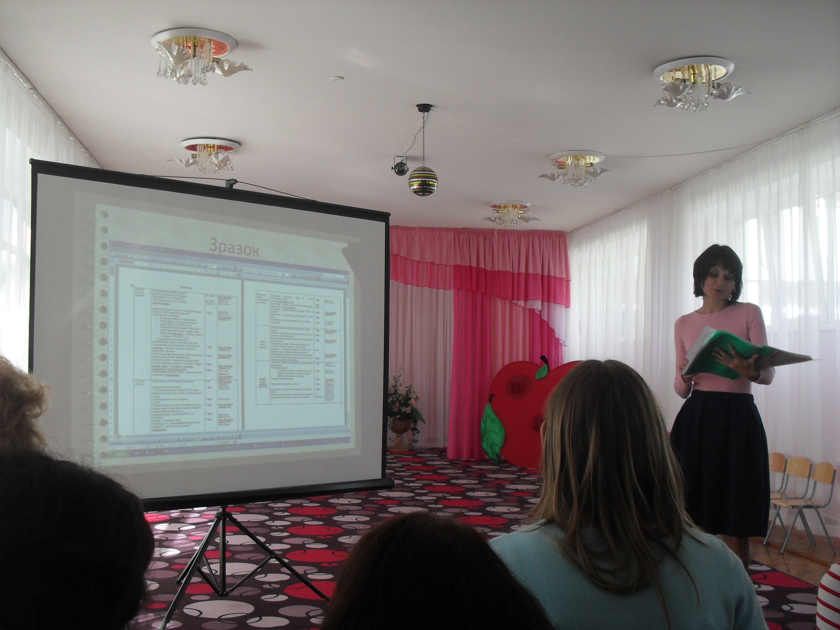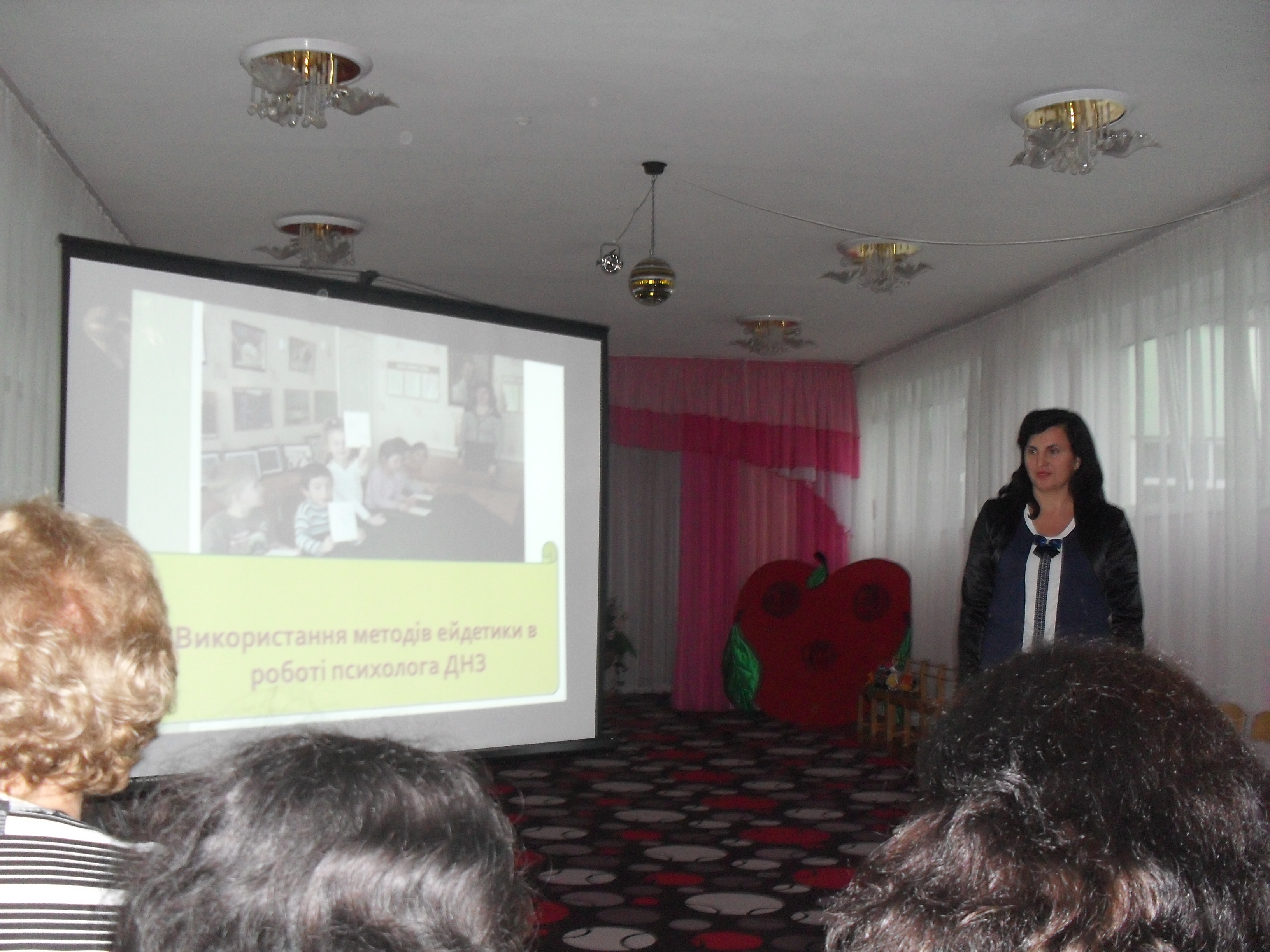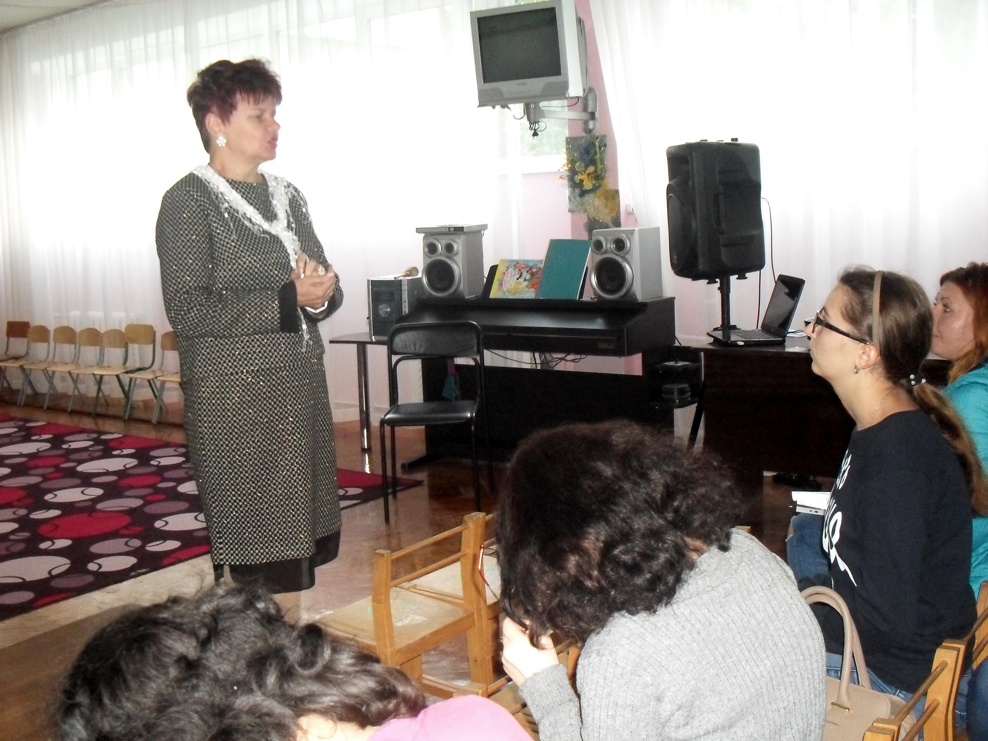 Студенти обговорили особливості використання технологій художньо-естетичного розвитку дітей ІІ молодшої та середньої груп, проаналізувавши заняття (вихователі Заблоцька Л.М. та Лузан А.Г.), взяли участь у тренінгу з постановки музичної п`єси до театру рук "Яблуко" (музичний керівник Колосюк Л.О.), завітали до міні-музеїв та музею Г.Світлицького, про експозицію яких розповіла директор ДНЗ Шевченко Т.М.