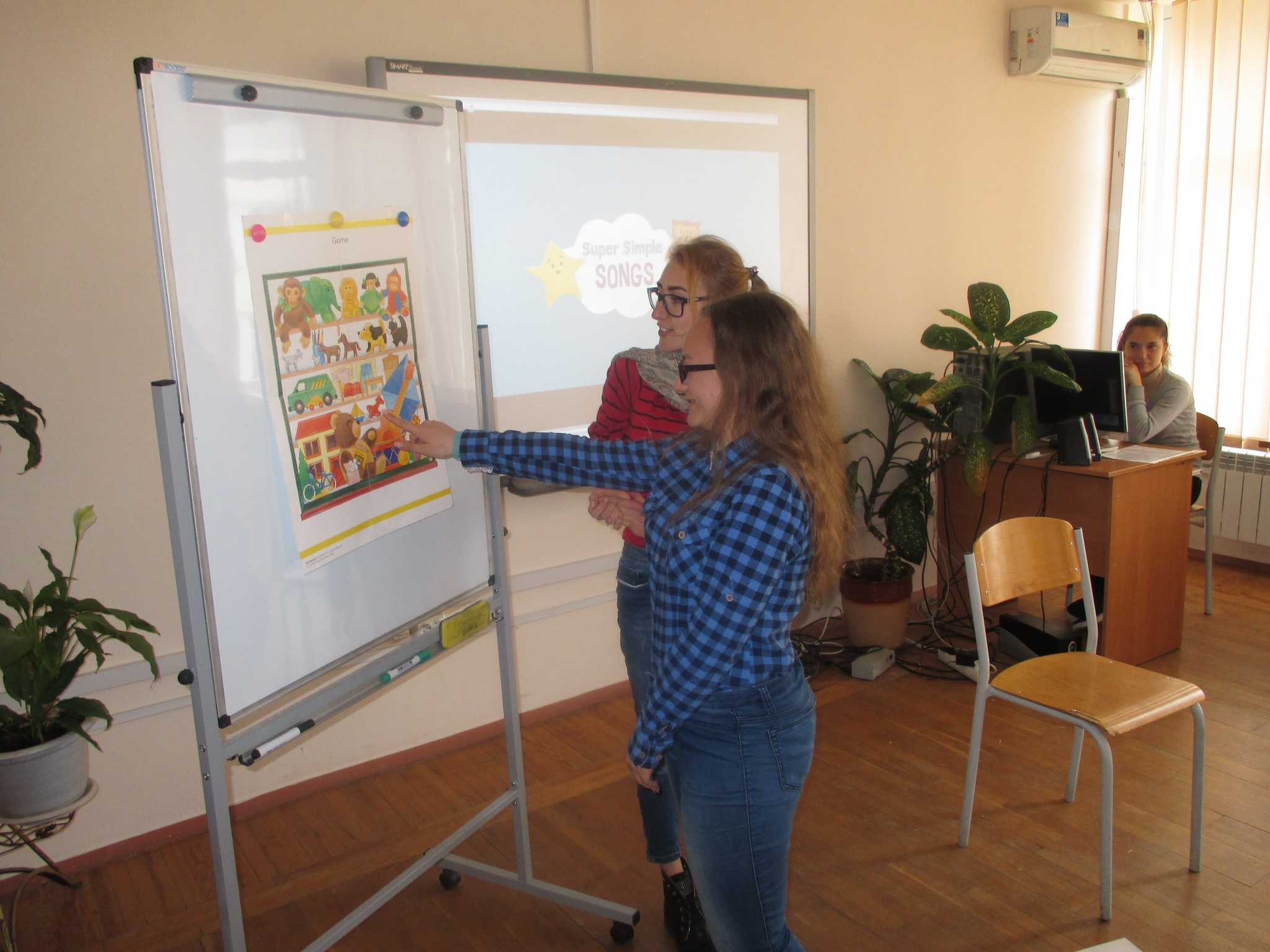 Практичне заняття у формі тренінгу пройшло цікаво й емоційно, студенти мали змогу відчути себе у ролі вчителів, моделюючи різні етапи заняття англійської мови. Модератор заходу: О. В. Лобода, старший викладач кафедри іноземних мов і методик їх навчання.