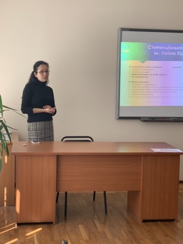 Виговська О.С. ознайомила з індивідуальними можливостями програми Еразмус +, програмою академiчних обмiнiв iменi Фулбрайта в Українi, стипендією Факультету «Artes Liberales» Варшавського університету та стипендією імені Івана Виговського, програмою Уряду Польщі для молодих науковців, стипендіальною програмою ім. Лейна Кіркланда та ін.