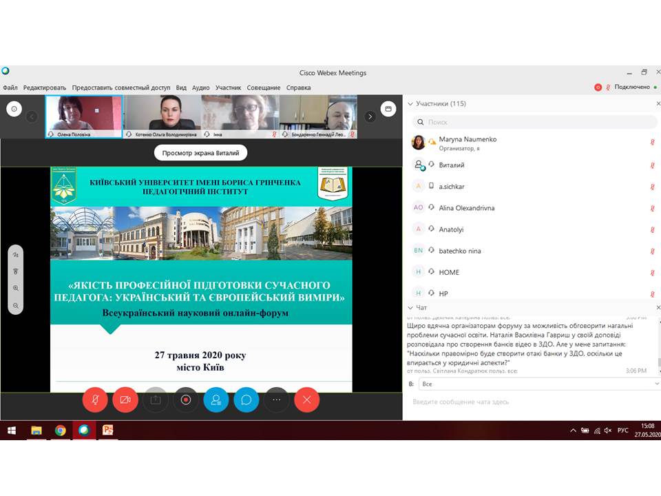 27 травня 2020 року в Педагогічному інституті Київського університету імені Бориса Грінченка відбувся Всеукраїнський науковий онлайн-форум «Якість професійної підготовки сучасного педагога: український та європейський виміри».