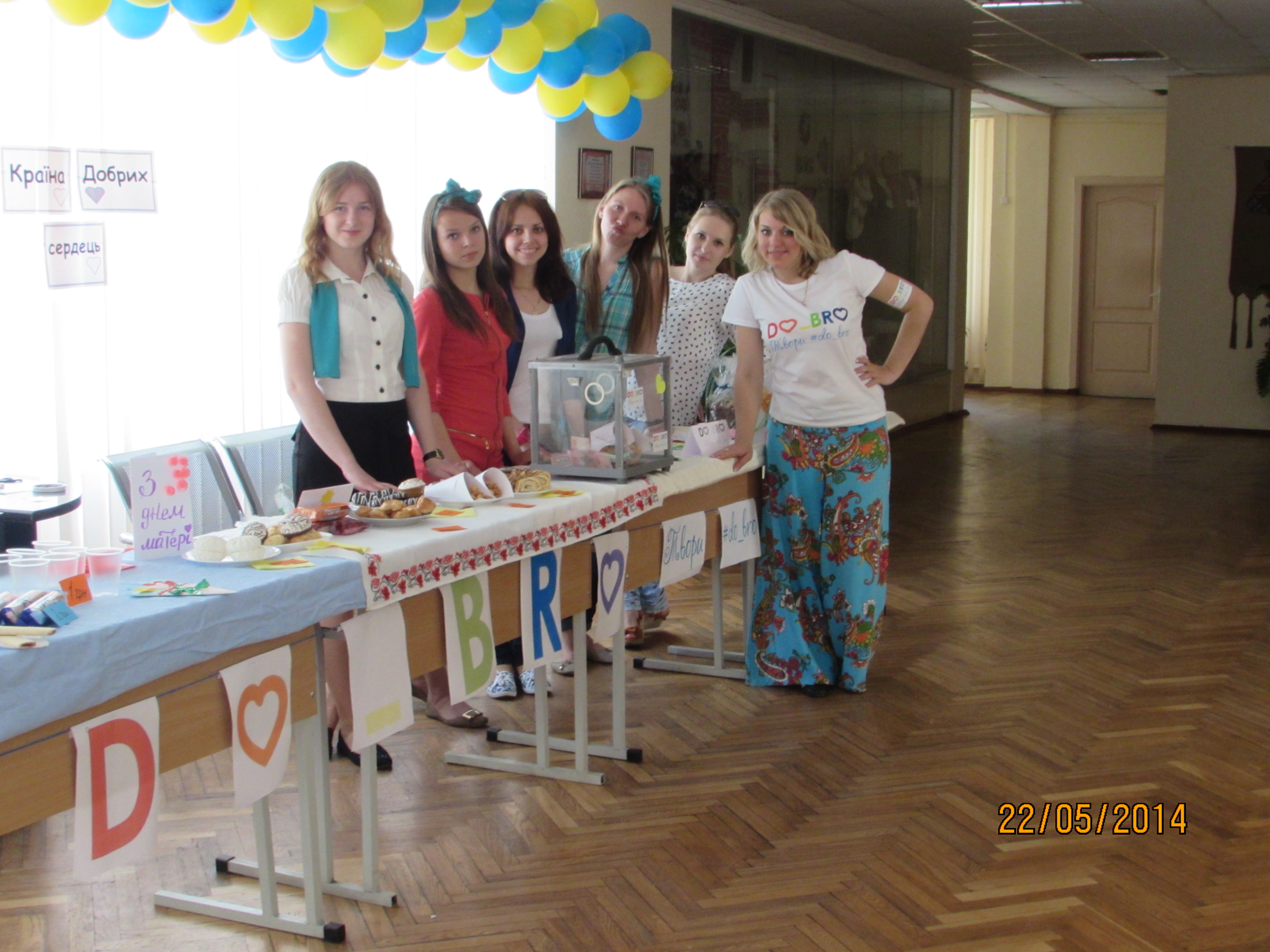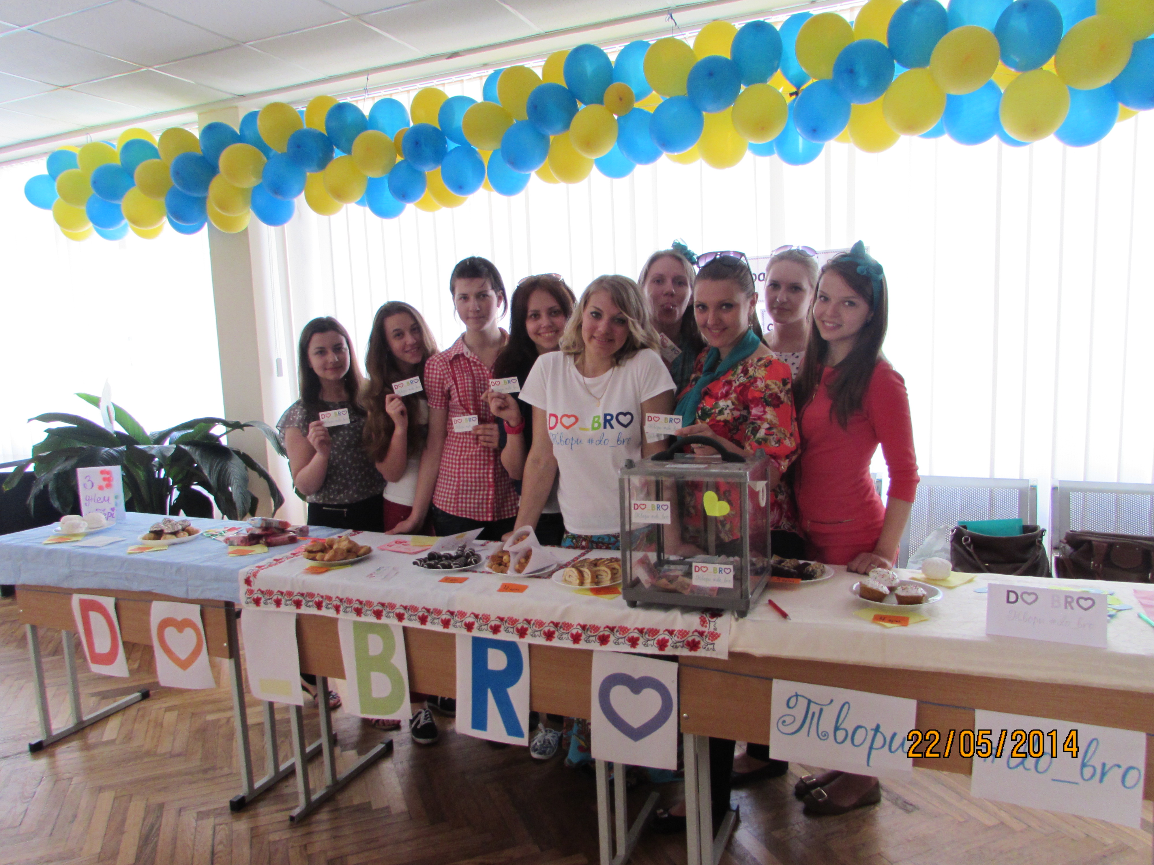 22.05.2014 року в Педагогічному інституті об 11.00 відбувся ярмарок благодійної платформи DO_BRO. Студенти приготували смачні тістечка, листівки, виготовлені власноруч. Усі, хто долучився до акції мали змогу написати своє ім’я на сердечках жовтого та блакитного кольору і наклеїти їх на карту України по різним регіонам, тим самим подарувавши частину свого серця дітям.