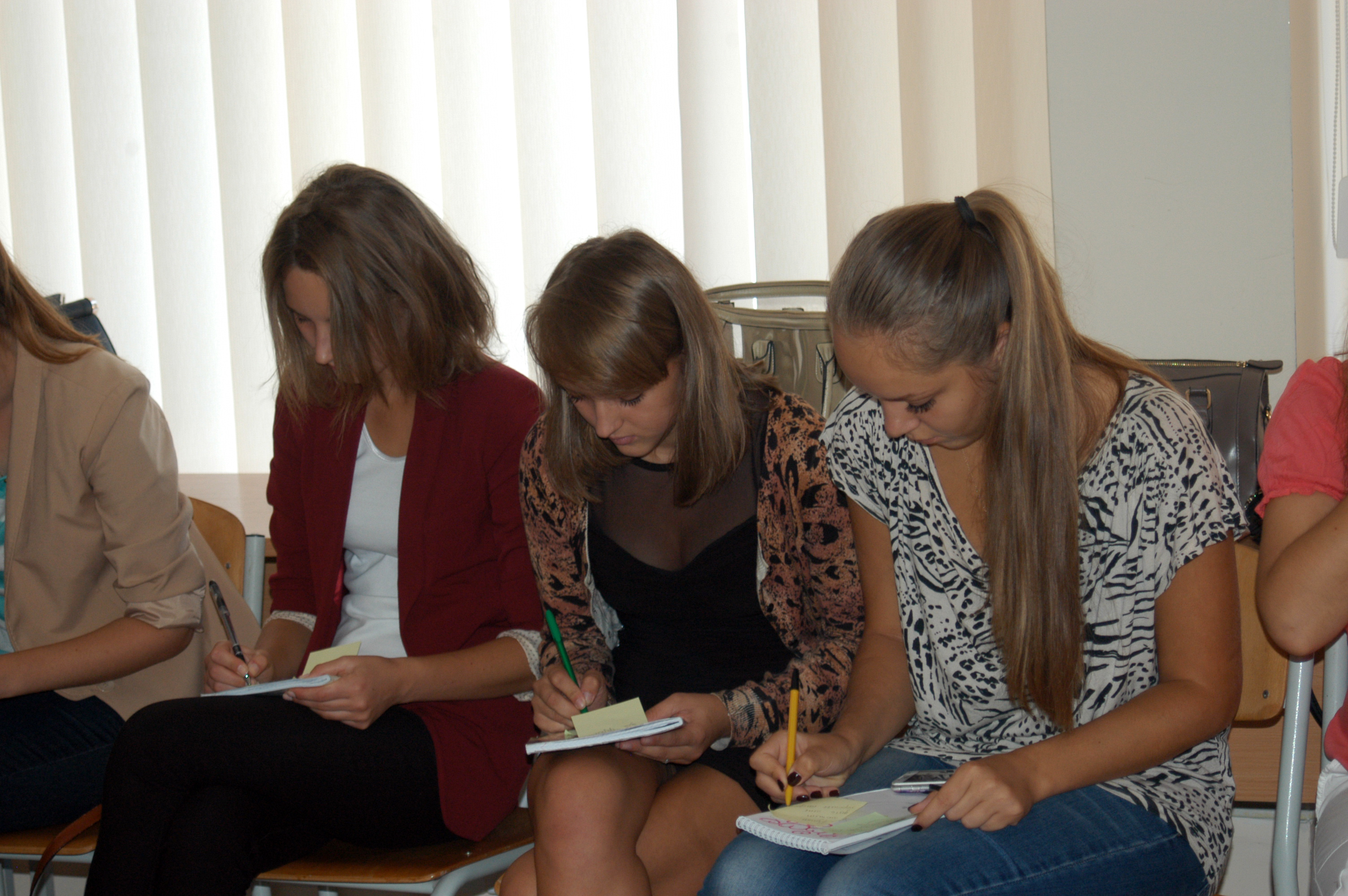 Вправи : «Рулетка знайомств », «Різноманітність імен», «Люди до людей», «Корабель», «Зробимо фігурку», «Автопортрет»; бліц - опитування на тему : «Що дасть мені група ? Що я можу дати групі?», не лише підняли першокурсникам настрій та допомогли їм сміливіше проявити свої таланти й лідерські здібності, але й сприяли «народженню » нових членів Ради студентського самоврядування, СНТ та перспективних «генераторів ідей», котрі зможуть робити життя Педагогічного інституту кольоровим та яскравим.