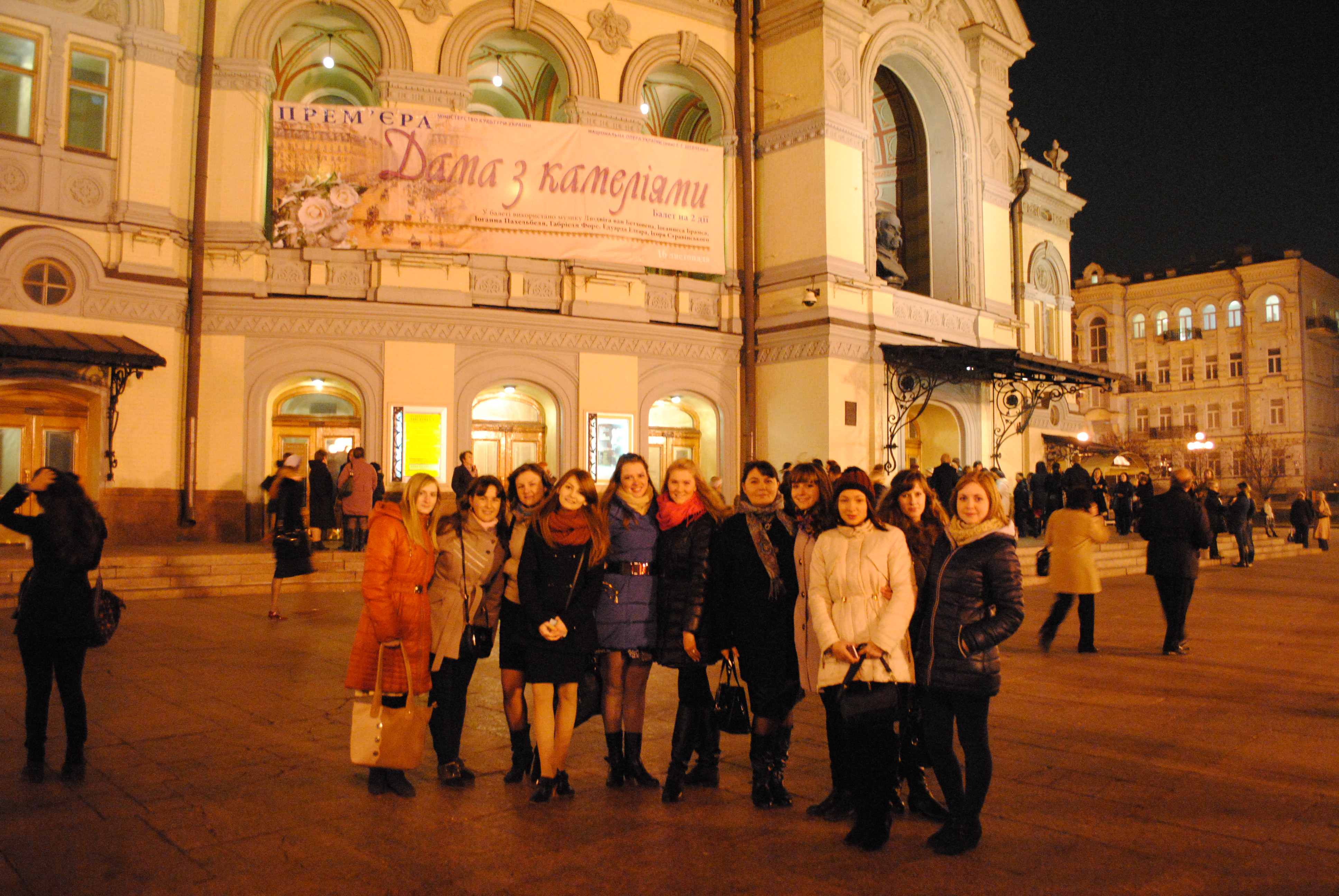 11 листопада 2014 р. студенти групи ПОб-2-12-4.0д ІІІ курсу (напрям підготовки 6.010102 "Початкова освіта", ОКР "Бакалавр", денна форма навчання) разом із викладачами кафедри іноземних мов і методик їх навчання Педагогічного інституту Кошарною Н. В. та Ситник О. І. відвідали Національний академічний театр опери та балету України імені Т. Г. Шевченка. Цей захід було проведено у межах вивчення навчальної теми "The Educational Value of Art" ("Освітні цінності мистецтва") з дисципліни "Практичний курс англійської мови". На підставі побаченого студенти підготували ессе на тему "The Educational Impact upon the Primary School Pupil's Identity Forming" ("Виховний вплив театру на розвиток особистості молодшого школяра").
