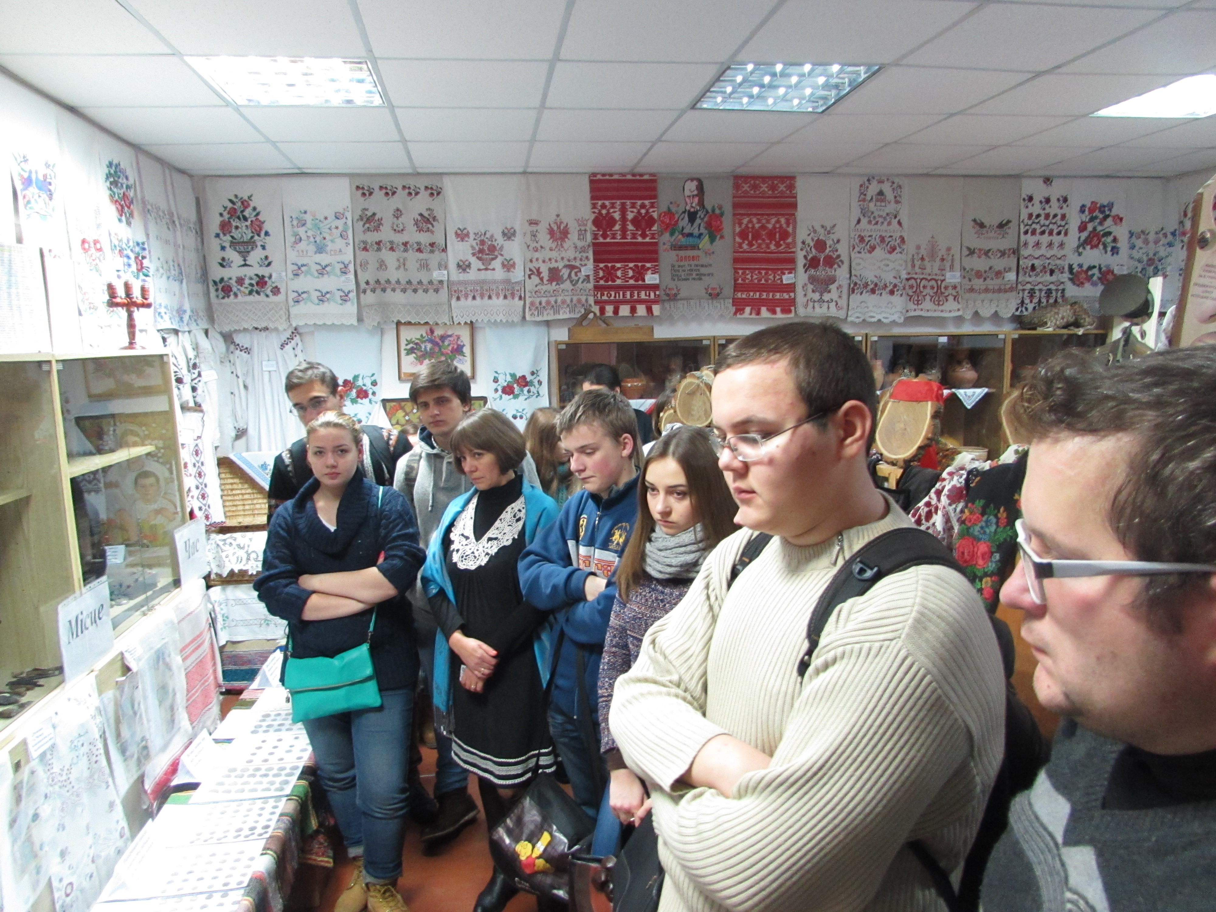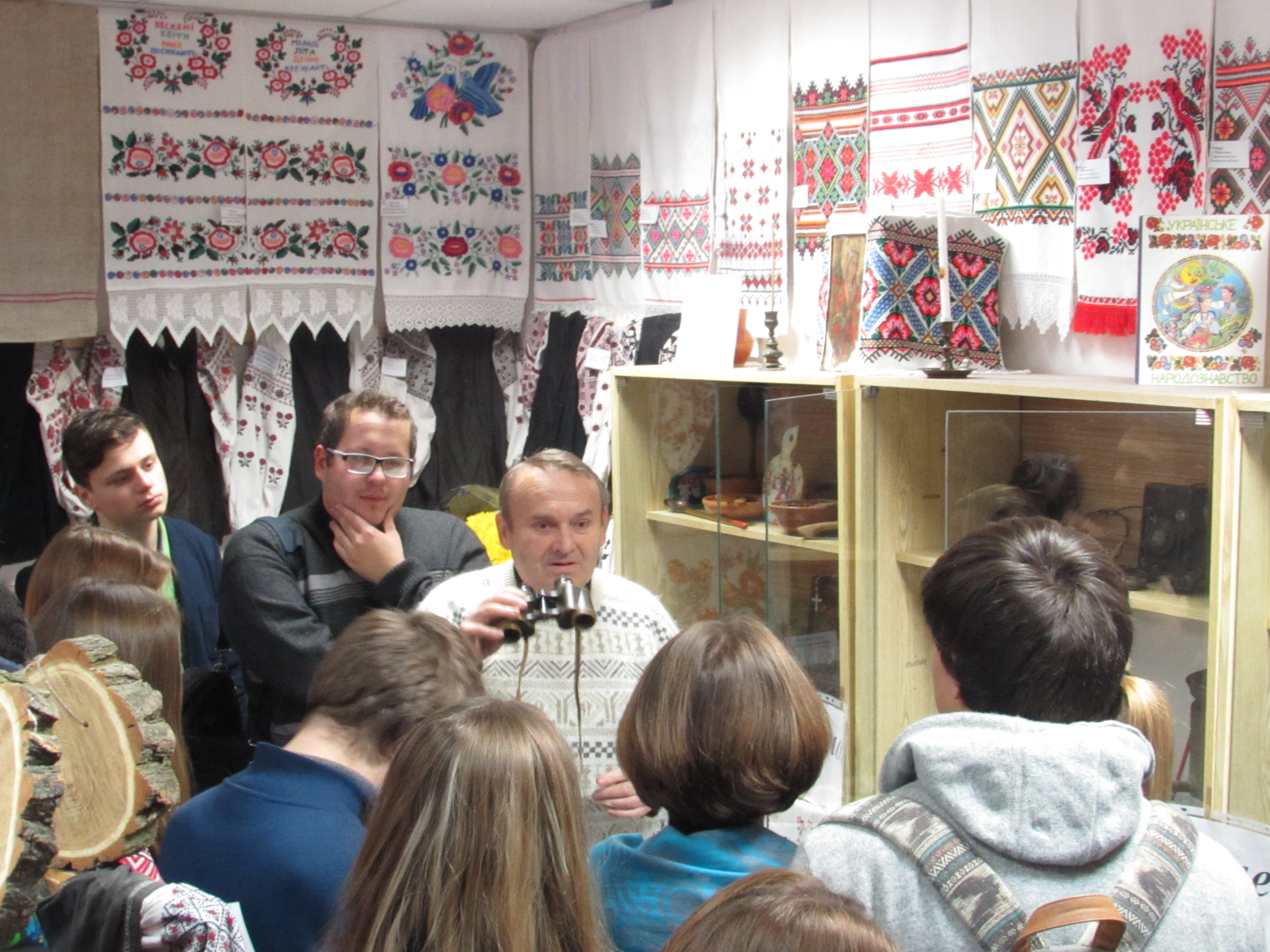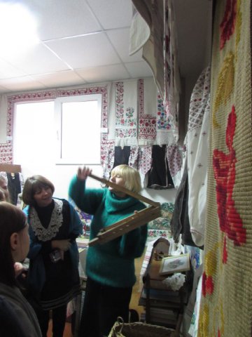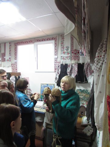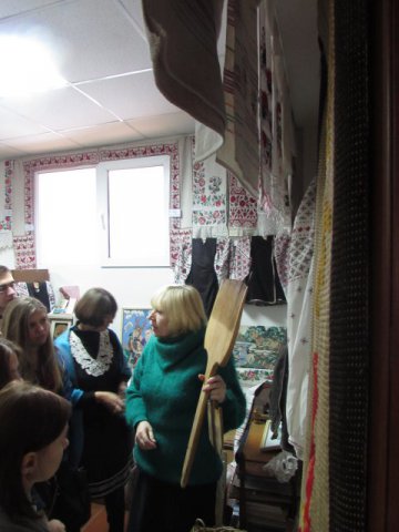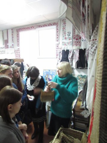 Майбутні історики з цікавістю слухали розповідь Ульянич Галини Іванівни про українські рушники та одяг із різних регіонів України. Особливу увагу студенти звернули на рідкісний старовинний посуд, предмети, що відносяться до часів трипільської культури, побутових речей, якими користувалися українці ще в ХІХ столітті.