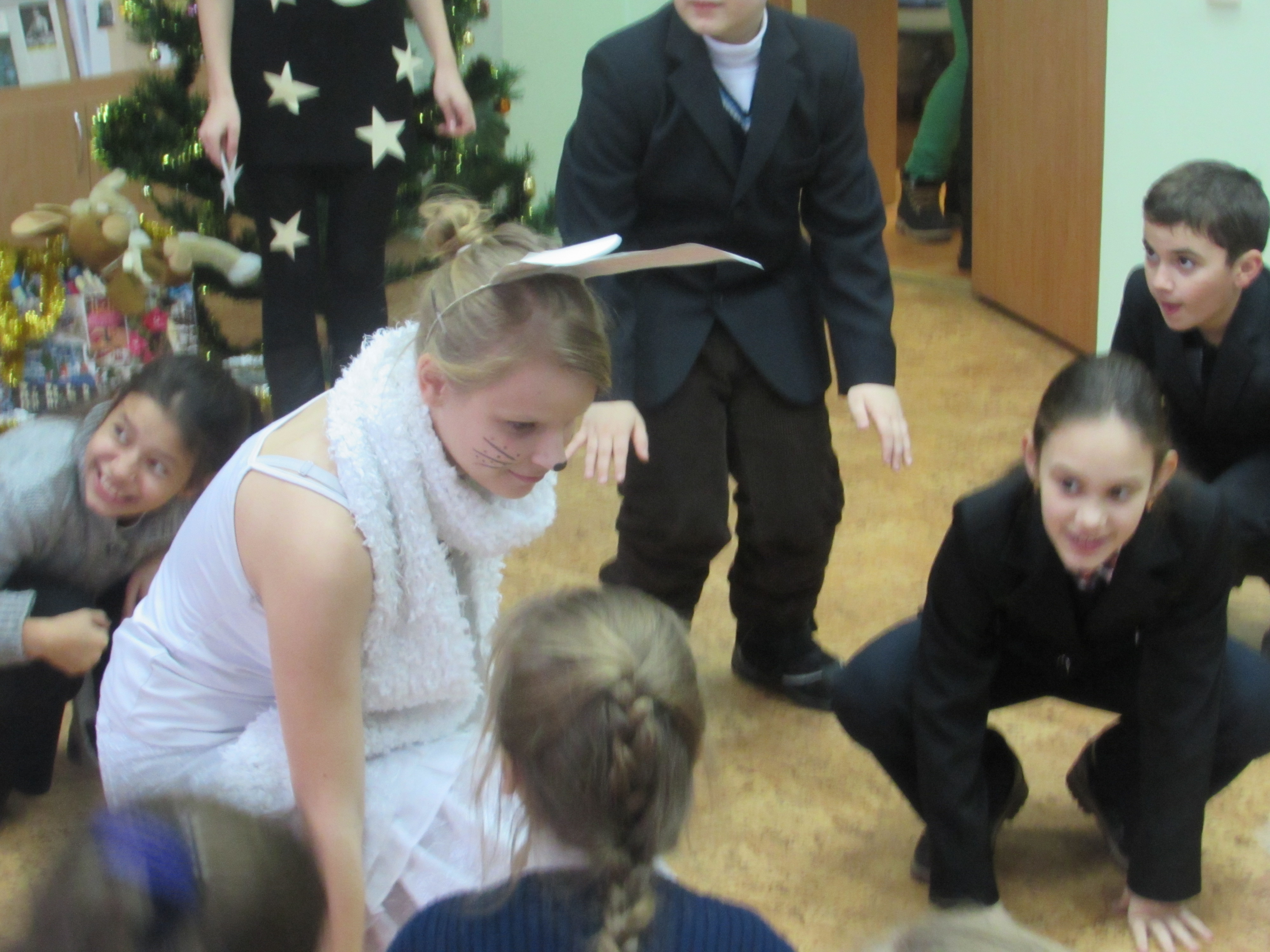 На маленьких мешканців Русанівки чекала надзвичайно захоплююча вистава «Лісові гості царівни Несміяни», у якій кожен міг взяти участь та відчути себе рятівником Новорічних свят: діти із захопленням слухали пісні у виконанні студенток, не відриваючи погляду спостерігали за кожним танцювальним рухом, а також із неабияким задоволенням самостійно декламували вірші. Окрім цього, малеча змагалась у спритності та уважності, граючи у веселі ігри та конкурси, завзято відгадували загадки та хором підспівували.