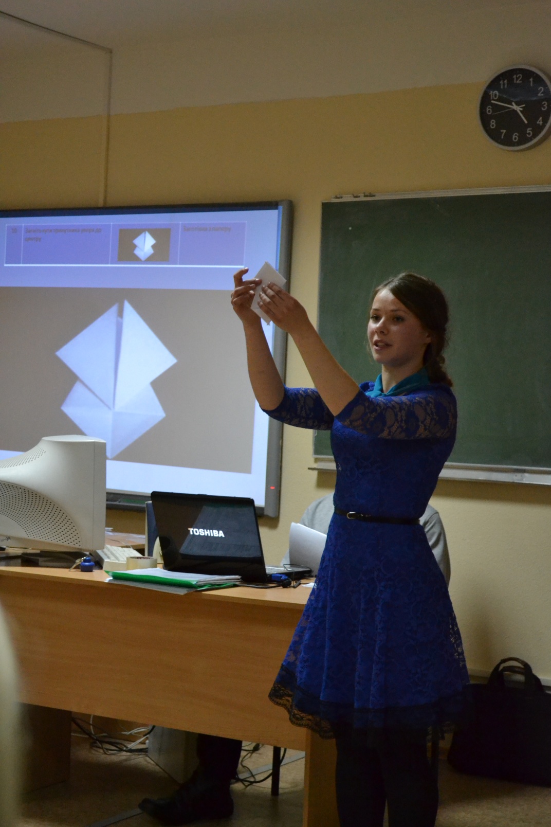 Кошман П.Я. уміло організував роботу студентів, поділивши їх на творчі групи, кожній з яких було запропоновано певне завдання, спрямоване на виготовлення виробів з використанням техніки оригамі. Студенти в ході роботи вдало поєднували відеофрагменти уроків вчителів шкіл Києва, фрагмети власних уроків, елементи рольової гри. Після кожного етапу роботи було надано методичний коментар, опираючись на матеріали Державного стандарту загальноосвітньої початкової школи.