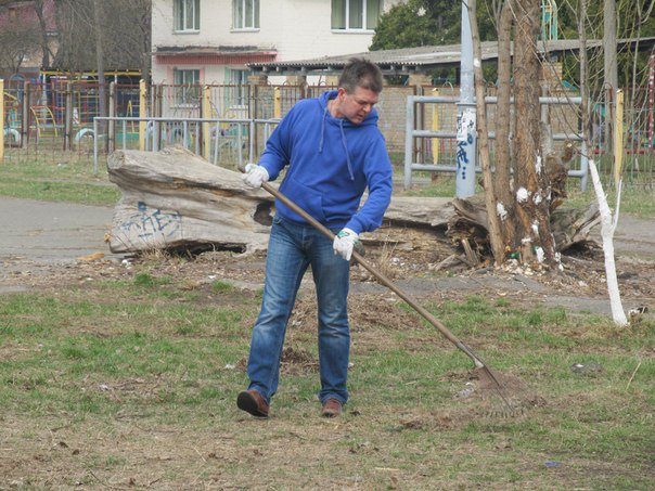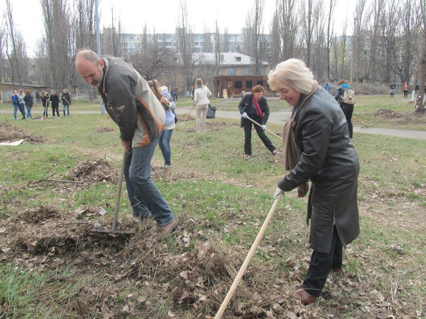 У суботу 28 березня 2015 року на стадіоні «Русанівець» було багатолюдно. Тут зібралися небайдужі люди не для того, щоб поганяти м’яча чи побігати наперегони… Студенти і викладачі Педагогічного інституту на чолі з проректором Київського університету імені Бориса Грінченка Олексієм Борисовичем Жильцовим провели толоку - загрібали, підмітали, виносили весь рукотворний непотріб і природні залишки, які місцями перетворилися на сміттєзвалище… Наші старання допомогли природі сповна дихнути животворним весняним повітрям, а вона з вдячністю подарувала нам миловидну зелень першої весняної травички. Також хочеться відзначити, що вже традиційно разом із грінченківцями на одному полі працювала команда депутата Київської міської ради Олеся Маляревича. Разом – сила!