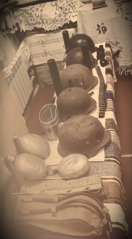 Особливу увагу студентів і школярів привертають солдатські каски, гільзи, баклажки, котелки, патронташі, пілотки.