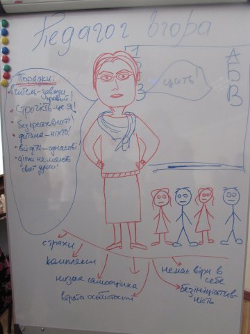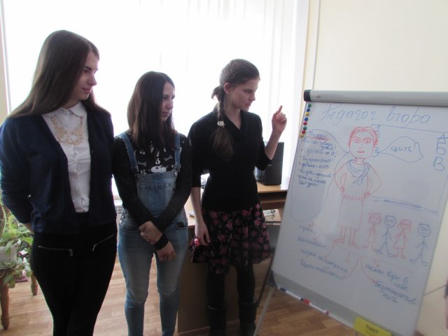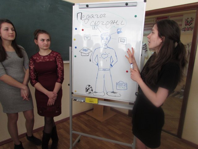 У другій частині круглого столу студенти змальовували образ педагога в минулому, в сьогоденні та в майбутньому. Аналіз даних образів показав, що зовнішній вигляд педагога у всі часи був простим, охайним, стриманим та витриманим у стилі одягу. Відмінність полягала у віковій характеристиці педагога (педагог «сьогодні» – молодий, педагог «вчора» – в роках).