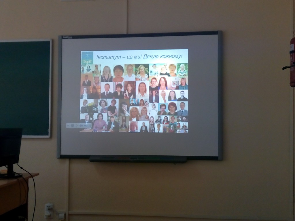 У своїй доповіді О.В. Котенко зосередилась на аналітичному узагальненні діяльності Інституту за 2017-2018 н.р. за освітнім, науковим, соціально-гуманітарним напрямами. Під час звіту, серед іншого, було акцентовано увагу на способах підвищення якості освітнього процесу в Інституті, нарощуванні темпів упровадження дистанційних, змішаних технологій навчання, виконанні Корпоративного стандарту наукової діяльності, переструктуруванні системи профорієнтаційної роботи.