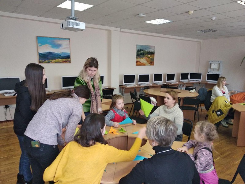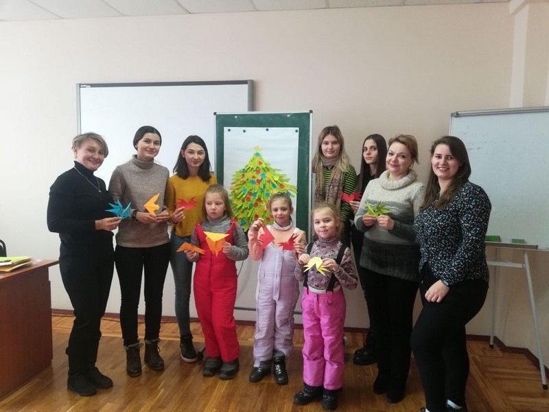 Напередодні новорічних свят, студенти 3 курсу спеціальності «Дошкільна освіта» разом із дітьми мікрорайону Русанівка, виготовляли фігурки з паперу (оригамі), які стали основою колажу «Новорічна ялинка».