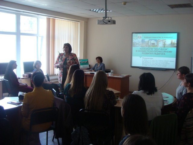 - Технологія «Self-book» в особистісно-професійному розвитку педагога (модератори: Венгловська О.А., доцент кафедри педагогіки та психології; Куземко Л.В. доцент кафедри педагогіки та психології; Новик І.М., старший викладач кафедри педагогіки та психології);