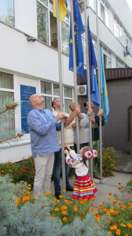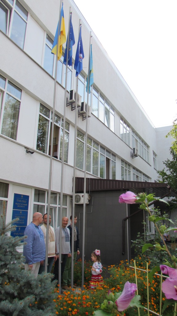 Наш прапор – символ України, єднає кожного з нас жовто-блакитними кольорами долі! І ми сильні, коли ми єдині!Напередодні 28-ї річниці незалежності України, спільноти Педагогічного інституту, Інституту мистецтв та Інституту людини зібралися на урочисте підняття Державного прапору України.