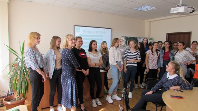 Під час тренінгу першокурсники мали змогу познайомитися та обмінятися власним досвідом, обговорити труднощі й питання, що у них виникли під час відвідування перших занять, пошукати ресурси для їх вирішення та повчитися способам ефективної взаємодії.