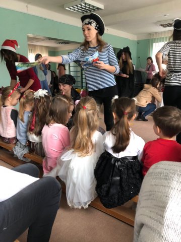 У межах вивчення дисциплін «Дитяча література з методикою» та «Педагогічне партнерство» студенти підготували виставу, щоб у переддень Дня Святого Миколая спільно з бібліотекою ім. В. Маяковського подарувати свято найменшим мешканцям мікрорайону Русанівка.