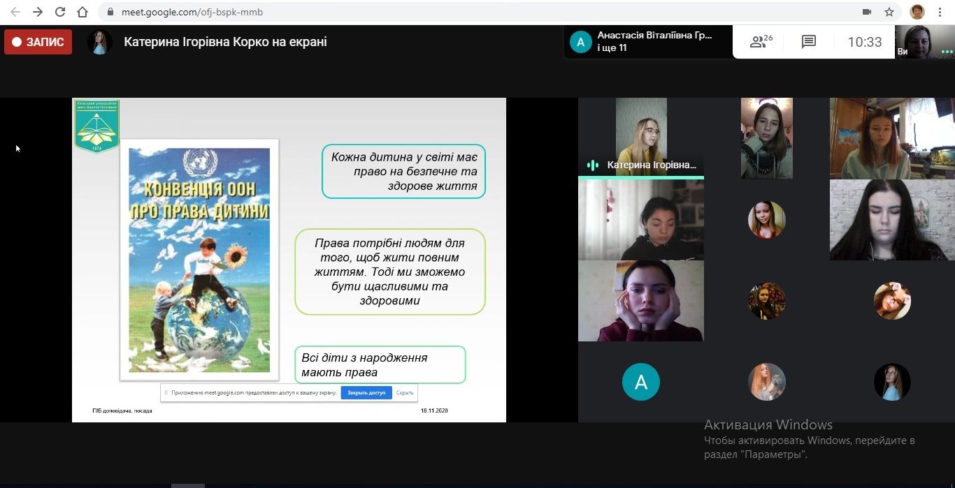 З цієї нагоди 18 листопада 2020 року було проведено онлайн семінар з теми «Права дітей: дослідження, досвід, рефлексія» (до Всесвітнього дня дитини).